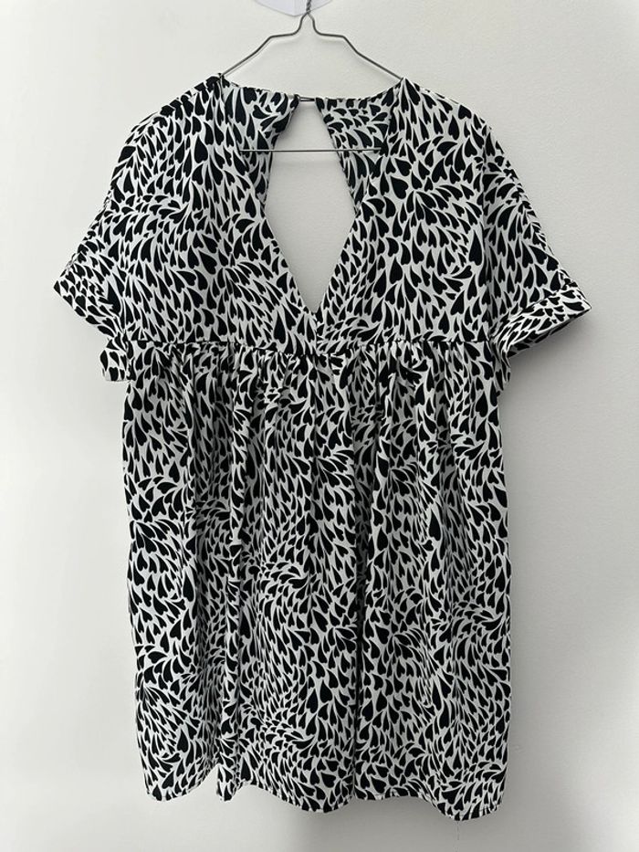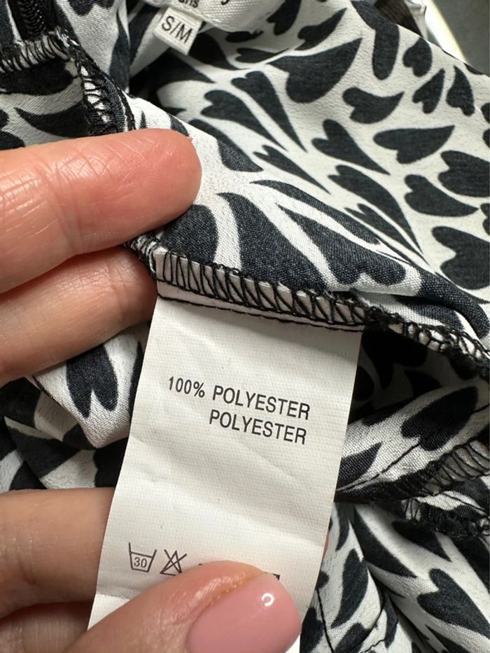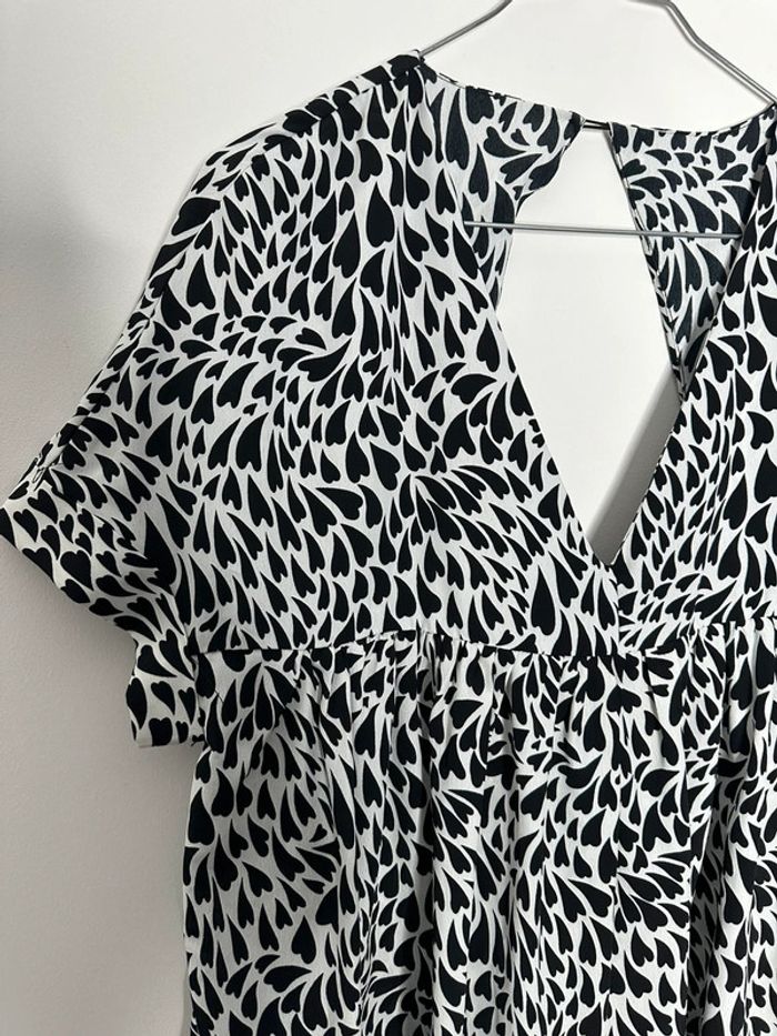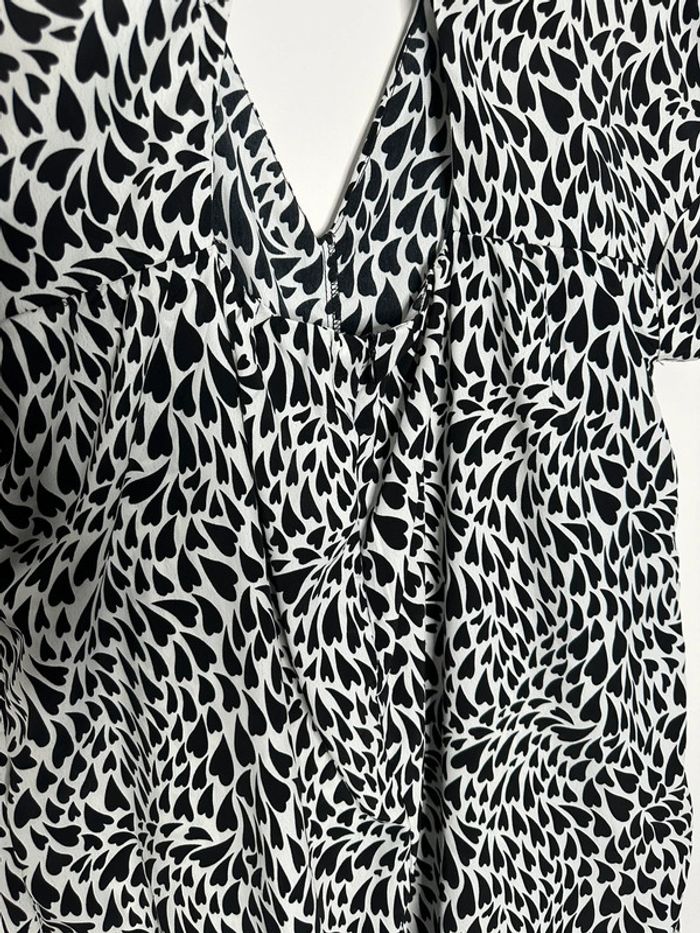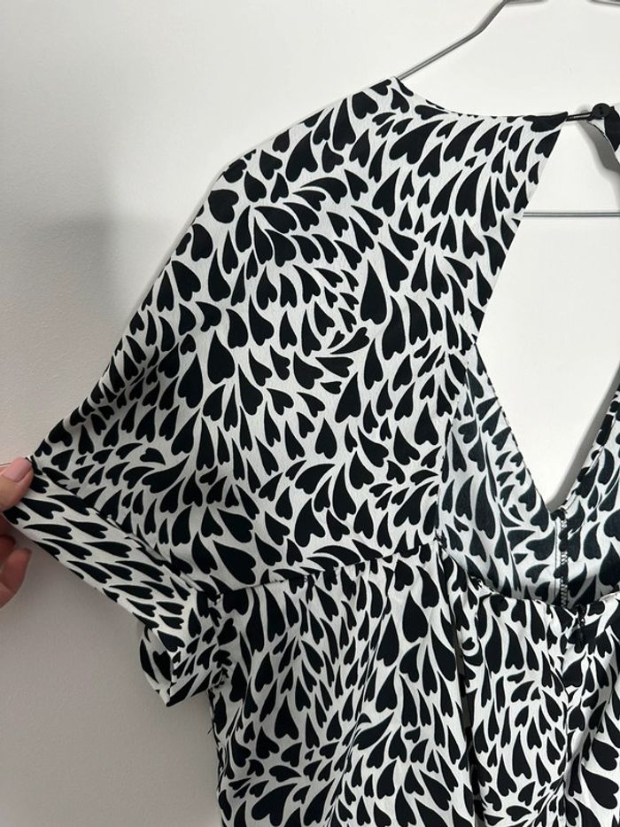 Combishort - Excellent état - Taille S/M équivalent 36/38 - Noire et Blanche - Imprimés petits cœurs - Manches courtes - Ouverte dans le dos - 100% Polyester