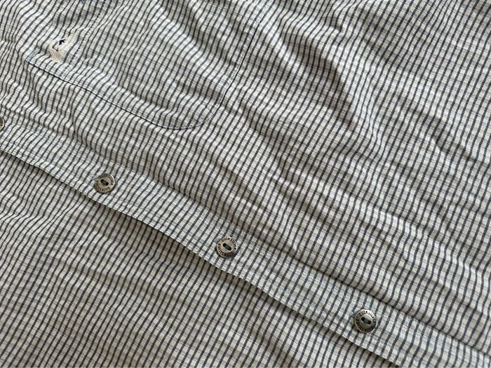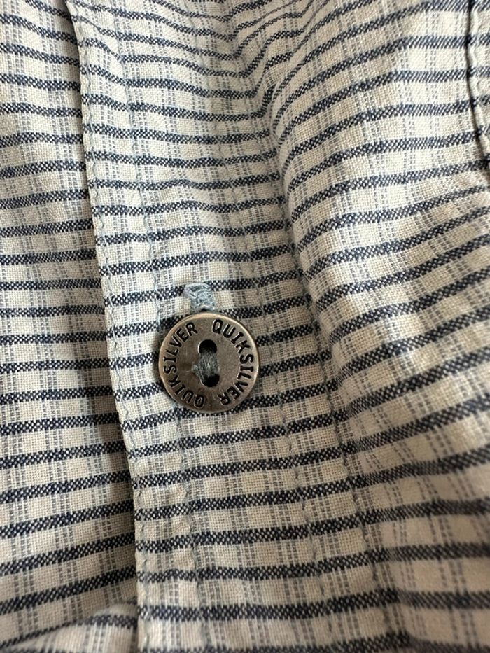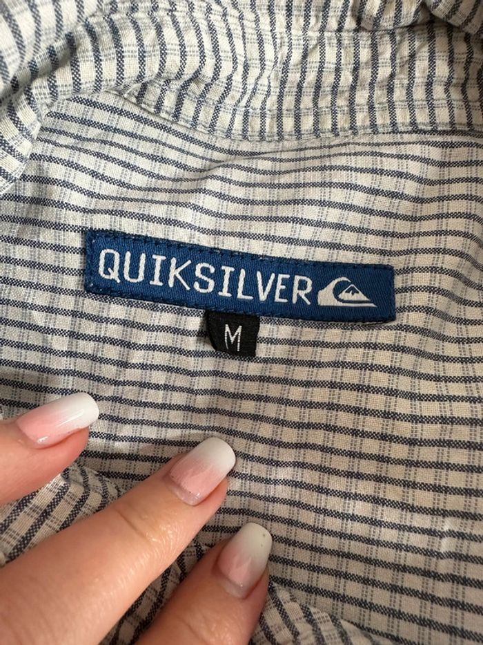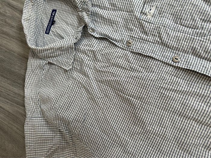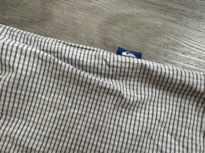 Chemise à carreaux - Excellent état - Modèle homme - Taille M - Blanche et bleue marine - Marque Quiksilver - Manches courtes - Poche au niveau de la poitrine avec un bouton et le logo de la marque brodée - Se ferme avec des boutons - Plus d’étiquette de matière