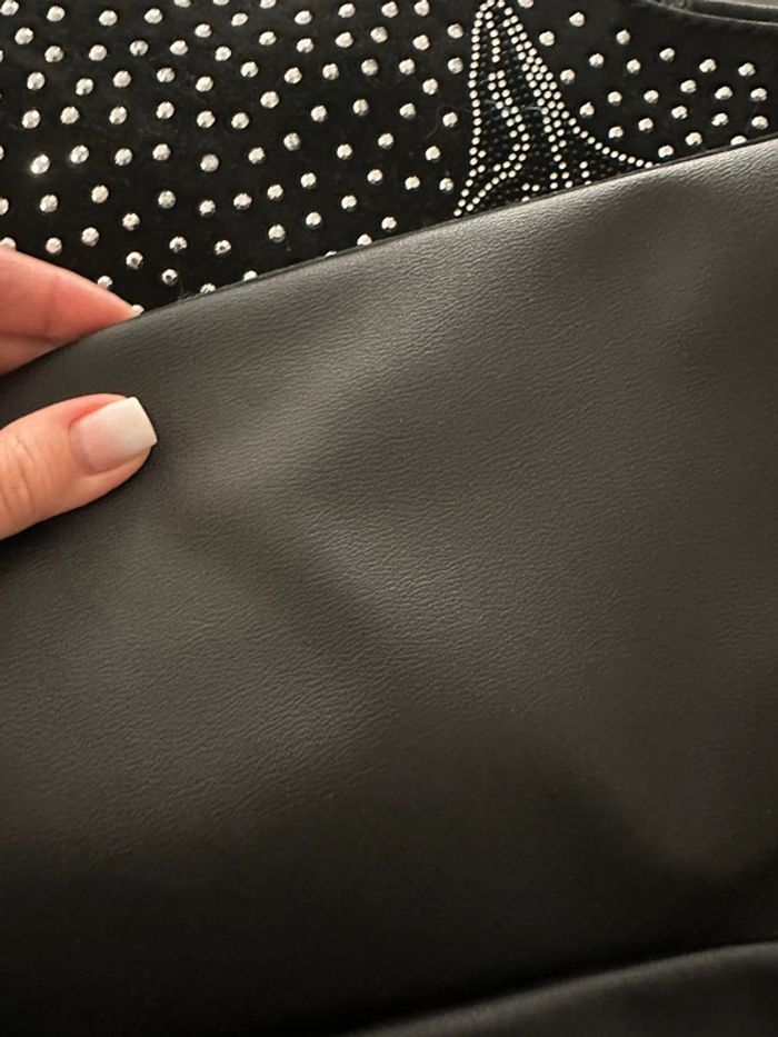 Grand sac à main noir strass argentés chat kitsch - photo numéro 5