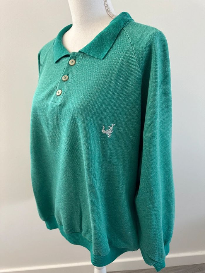 Polo oversize à manches longues moucheté vert et blanc Vintage T46/48 3XL/4XL - photo numéro 8