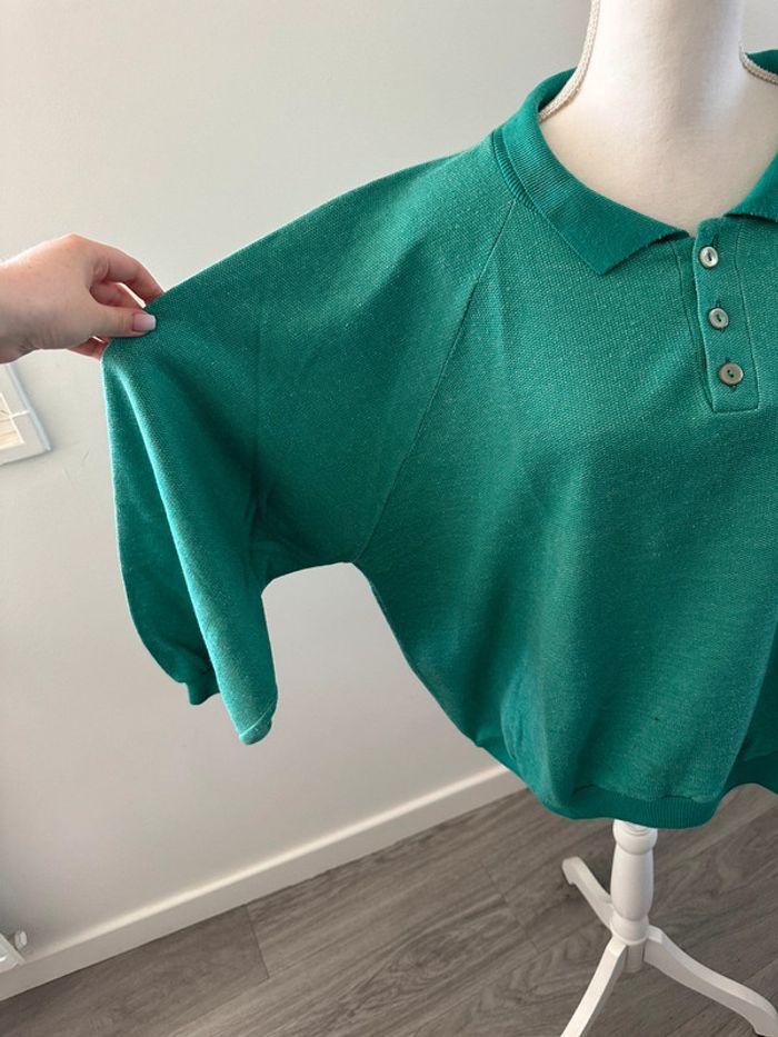 Polo oversize à manches longues moucheté vert et blanc Vintage T46/48 3XL/4XL - photo numéro 7