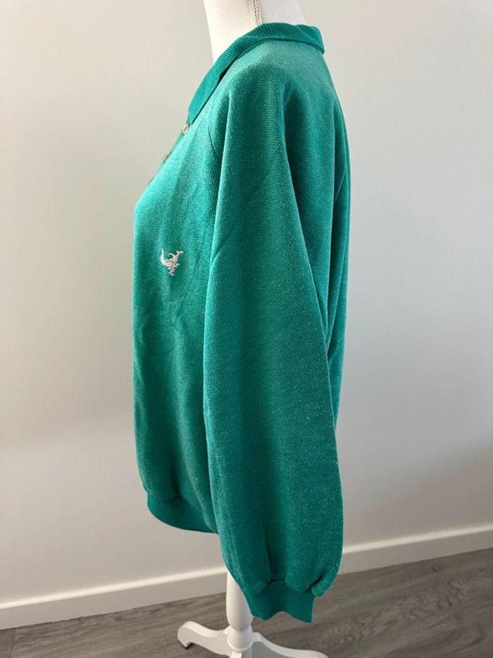 Polo oversize à manches longues moucheté vert et blanc Vintage T46/48 3XL/4XL - photo numéro 6