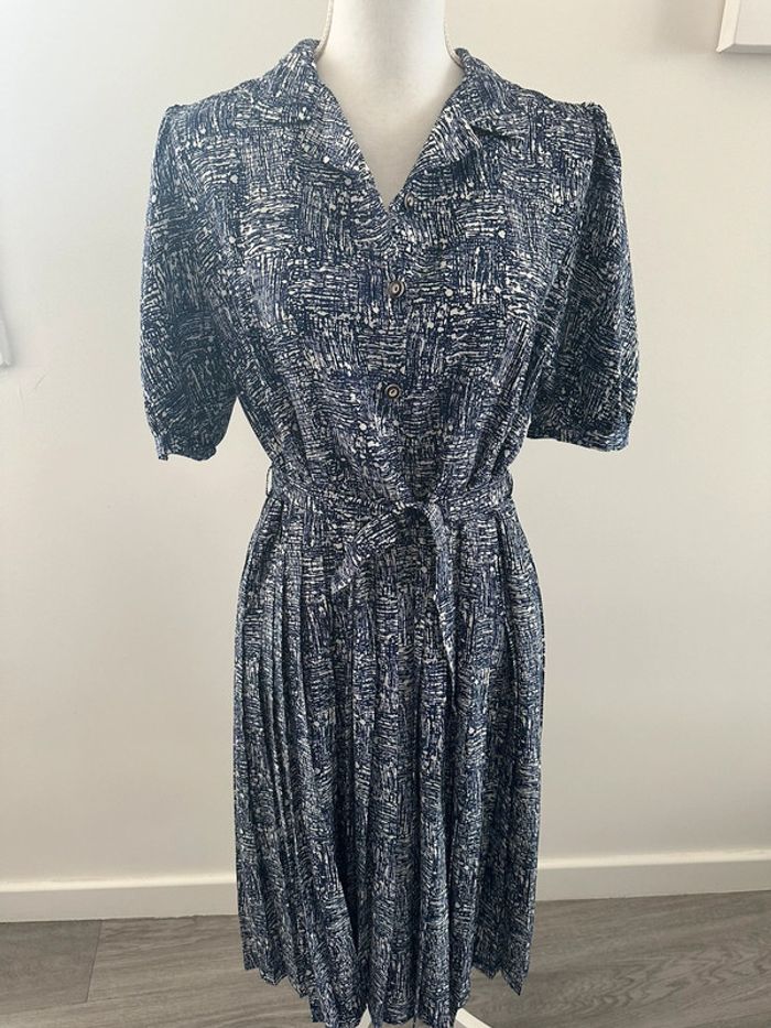 Robe mouchetée bleue marine et blanche Vintage T40/42 L/XL - photo numéro 2