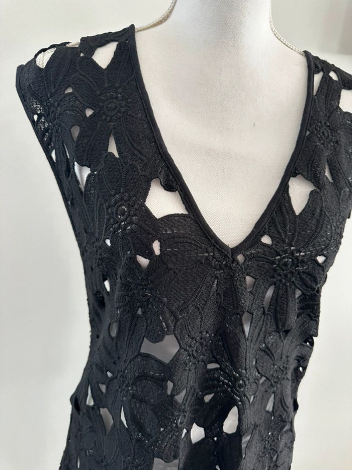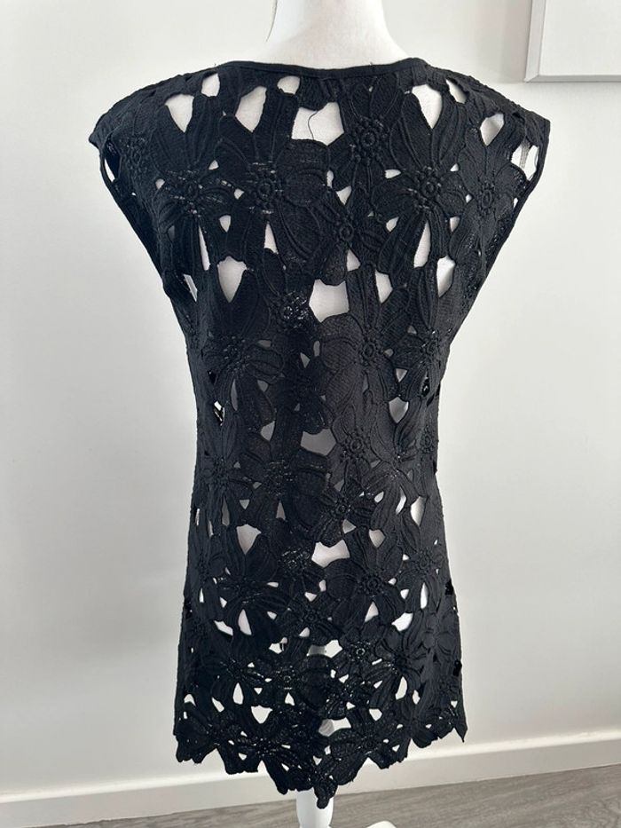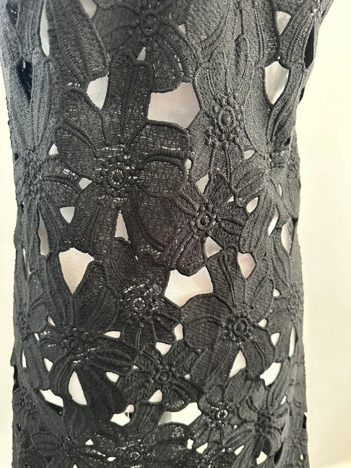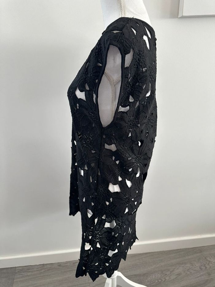 Robe noire ajourée broderies fleurs T38 M - photo numéro 3