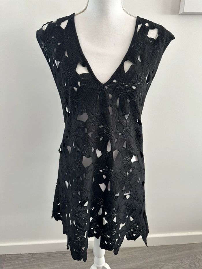 Robe noire ajourée broderies fleurs T38 M - photo numéro 1