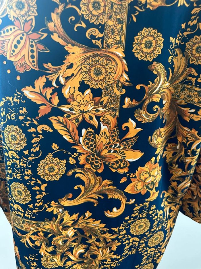 Blouse oversize baroque dorée et bleue marine Vintage T40/42 L/XL - photo numéro 2