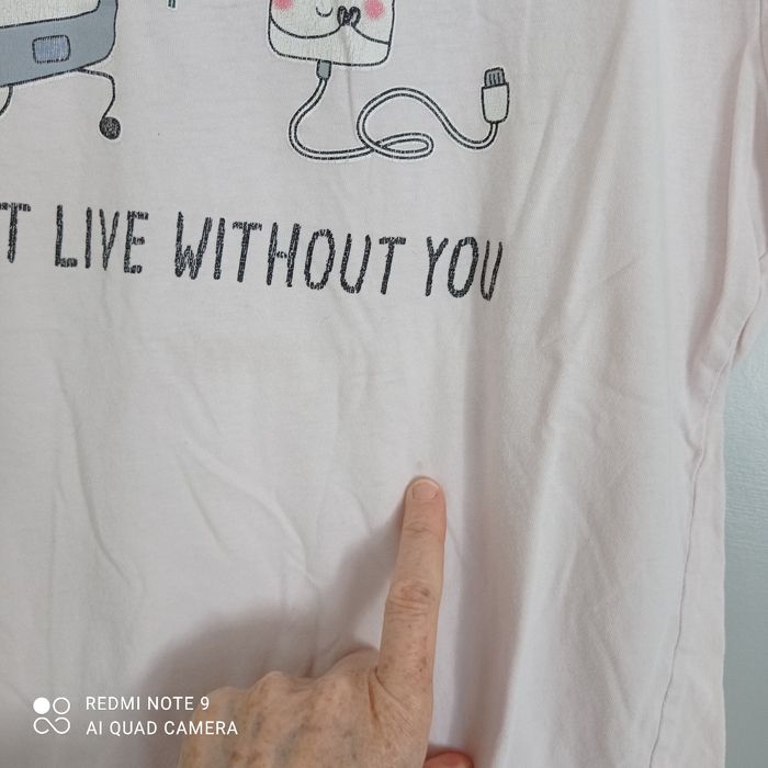 Rigolo car can't live without you : téléphone et batterie. Une petite tache. Les dessins ont des craquelures. C5