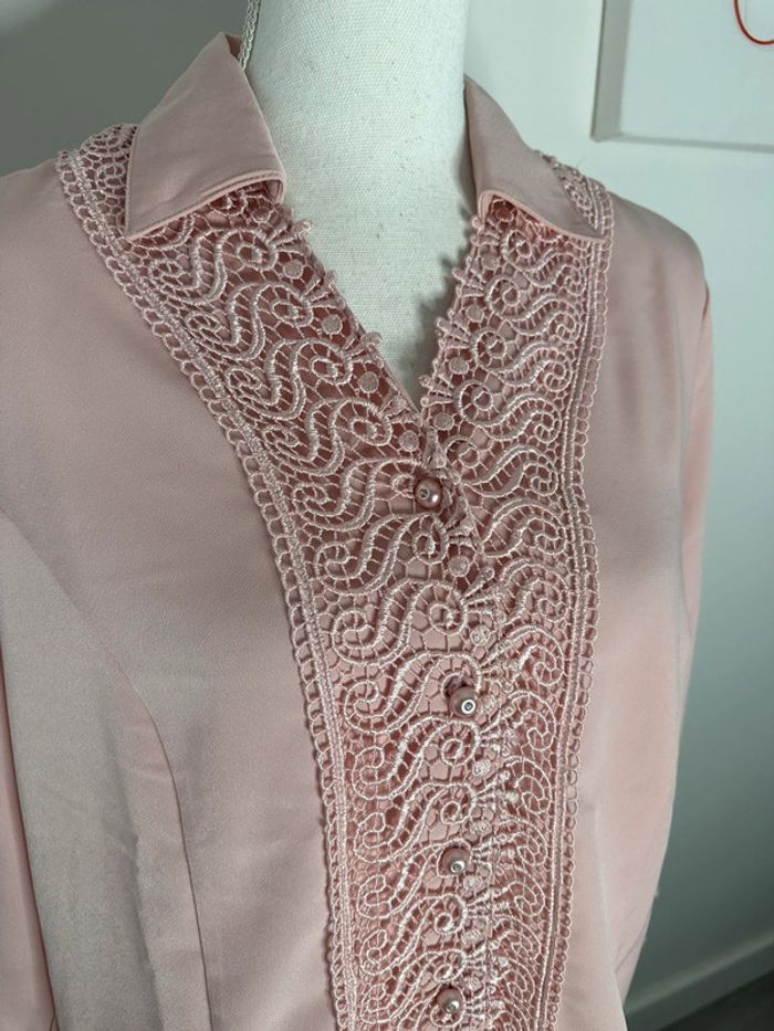 Chemisier rose poudré et dentelle Vintage T42 XL - photo numéro 5