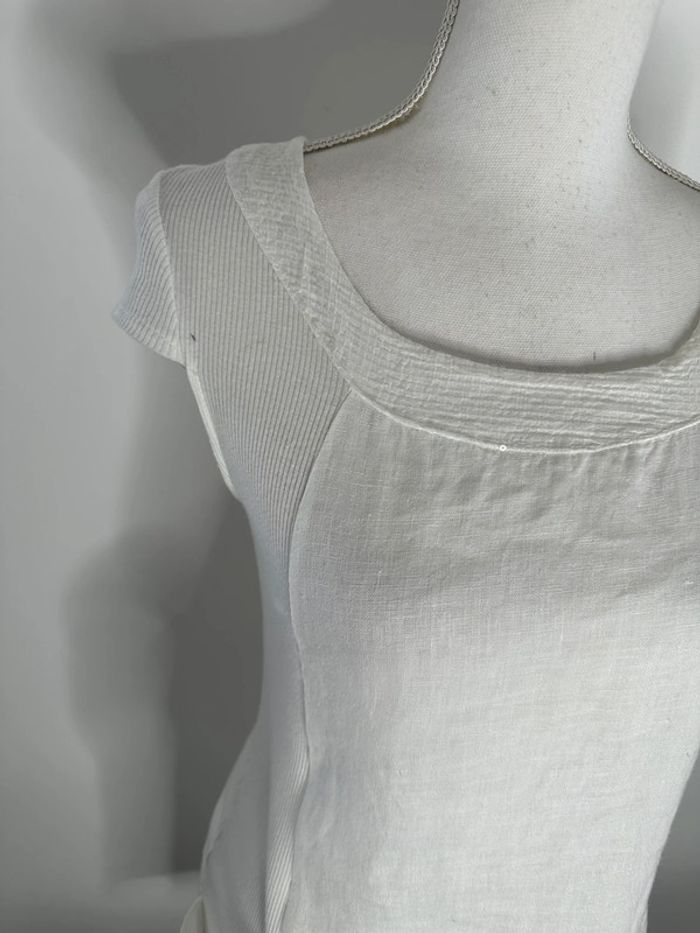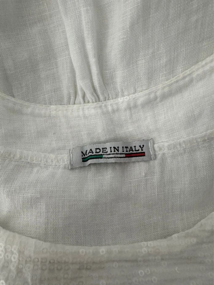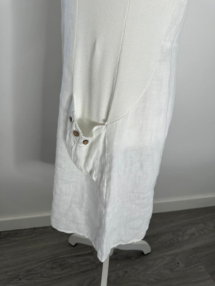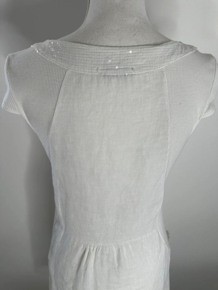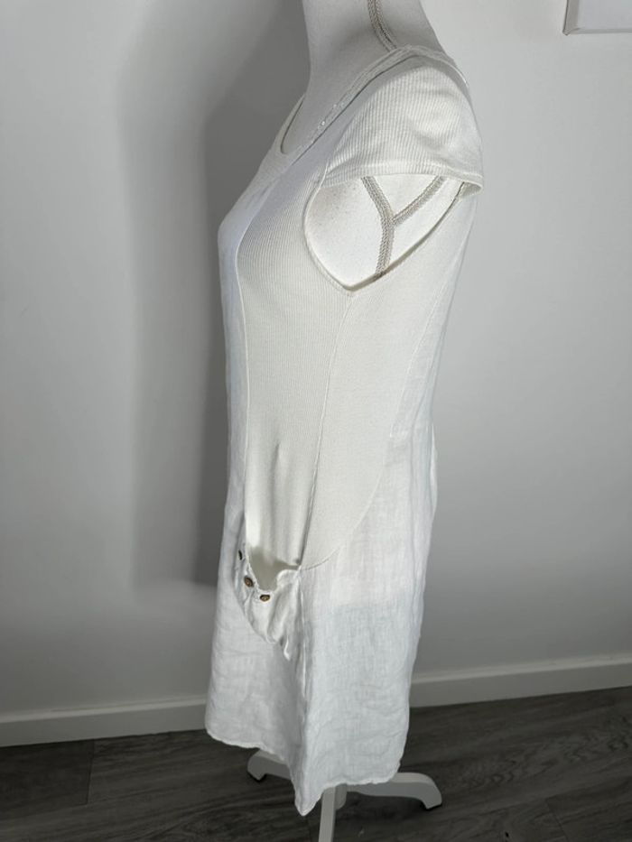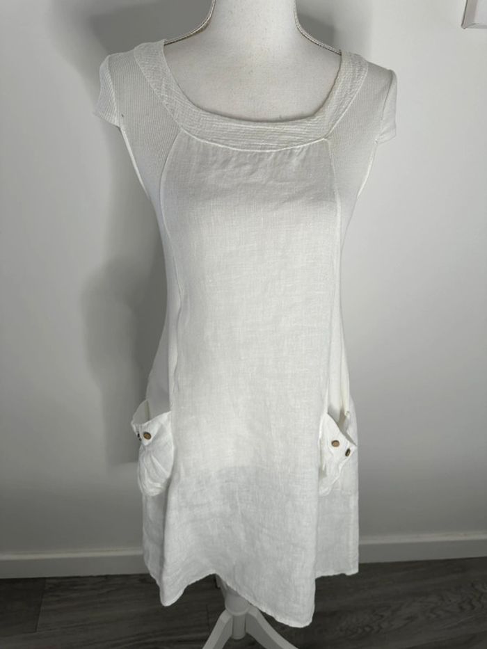 Robe - Excellent état - Manches courtes - Taille 38 équivalent M - Fabrication italienne 🇮🇹 - Deux poches - Col rond - Couleur blanche - 100% lin