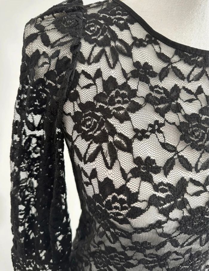 Blouse transparente en dentelle noire gothique Vintage T36/38 S/M - photo numéro 3