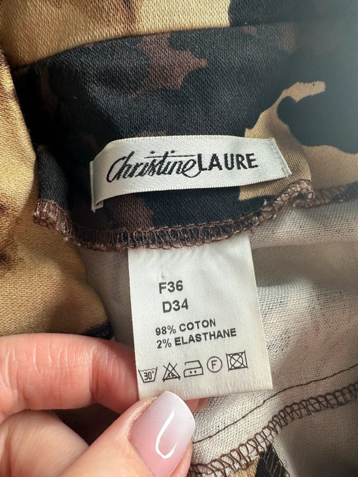 Veste en jean denim à fleurs beige et marron Christine Laure T36 S - photo numéro 7