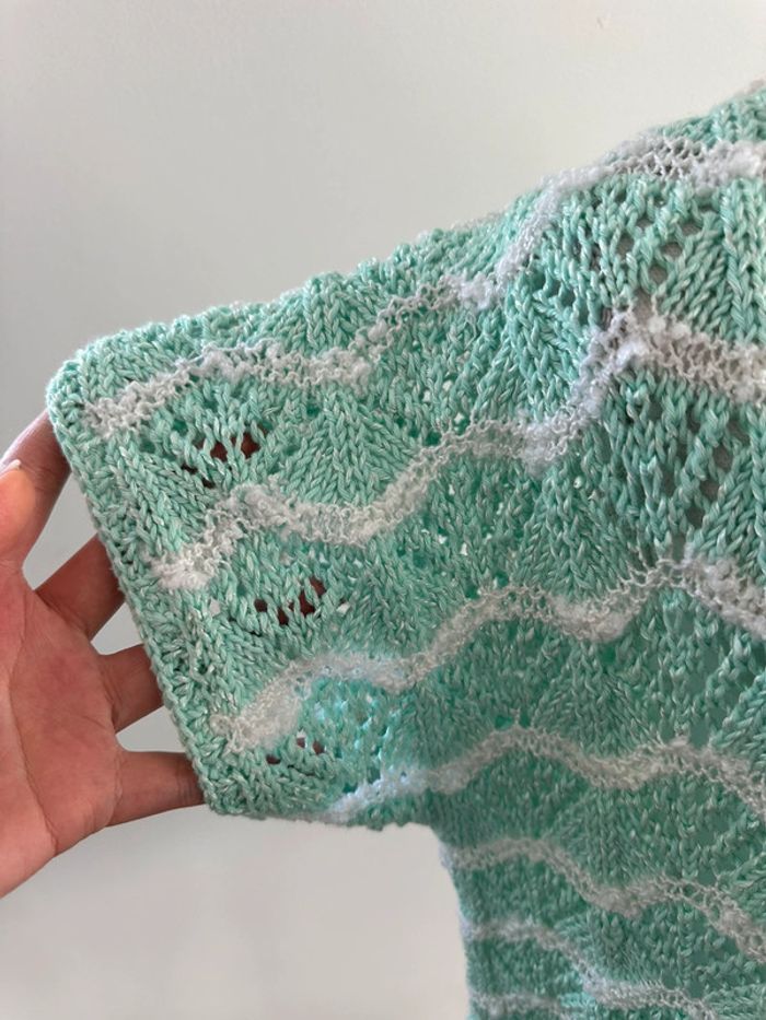 Blouse en crochet ajourée vert menthe et blanche Vintage T40 L