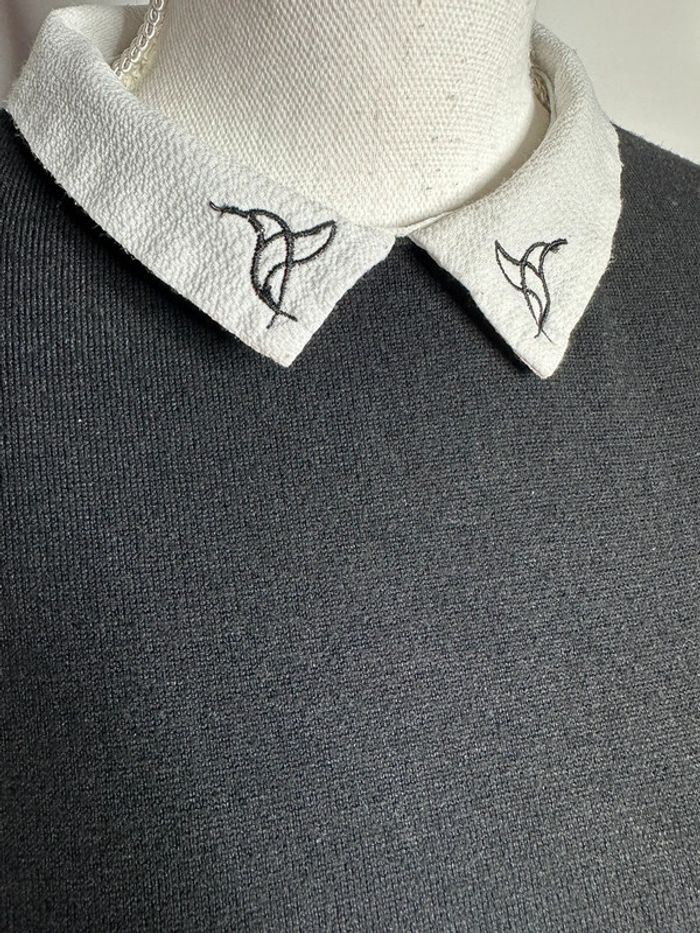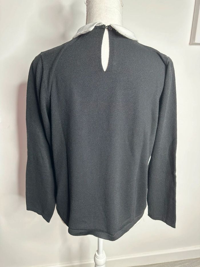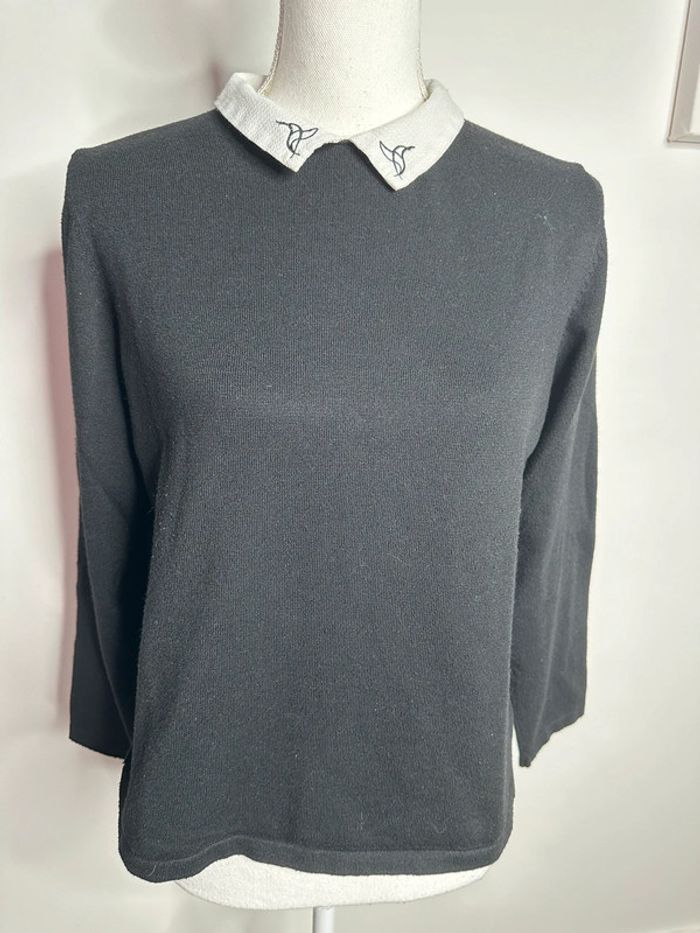 Pull - Excellent état - Taille 40 équivalent L - Noir et blanc - Col Claudine - Marque Art Love Paris - Détails broderies oiseaux au niveau du col - Pas d’étiquette de matière - Doux et chaud
