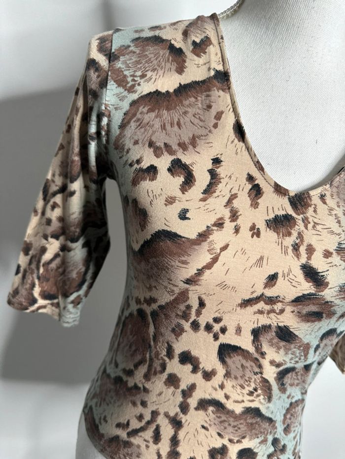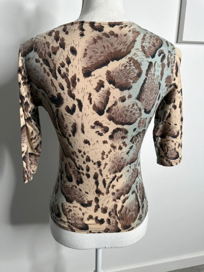 Blouse léopard beige et bleue Pecca Vintage T36 S - photo numéro 3