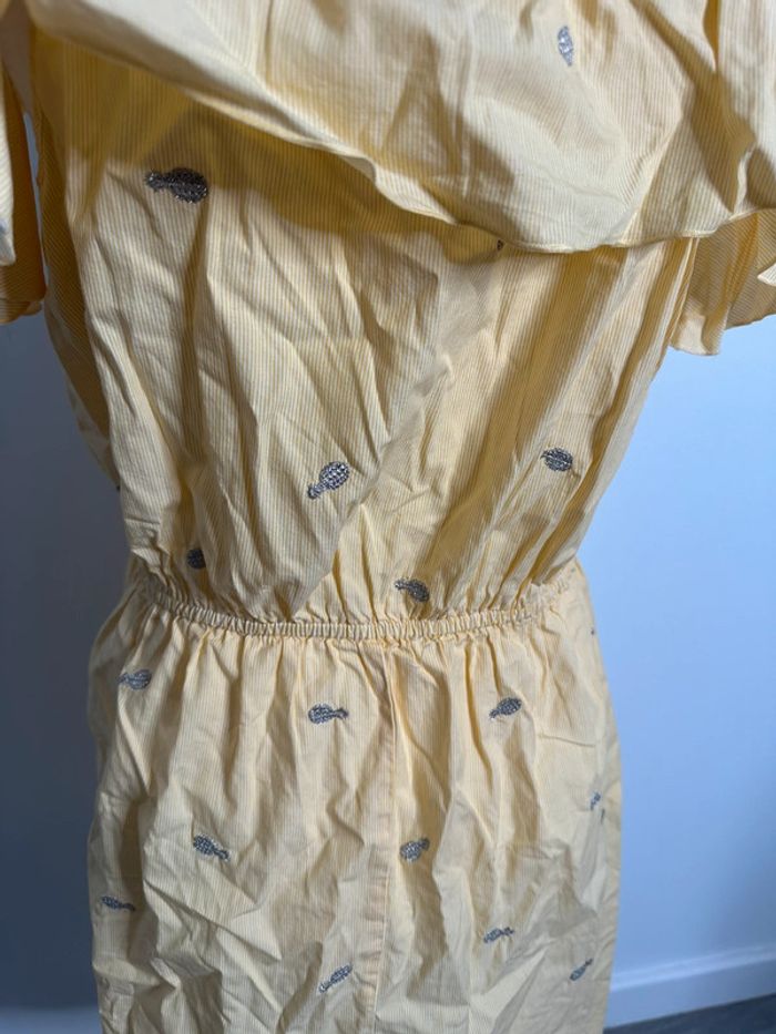 Robe Ananas - Excellent état - Taille 38 équivalent M - Cache cache - Élastique à la taille - Ananas argentés - Volant au niveau du haut - Tissus à rayures jaune et blanc - Plus d’étiquette de taille ni de matière