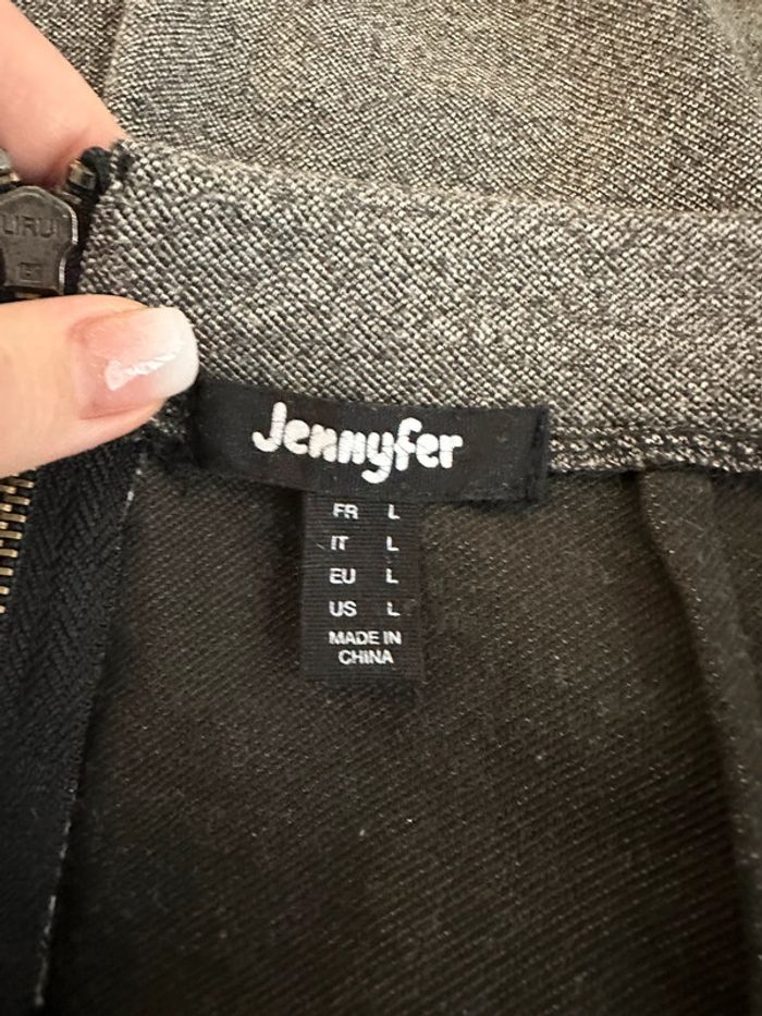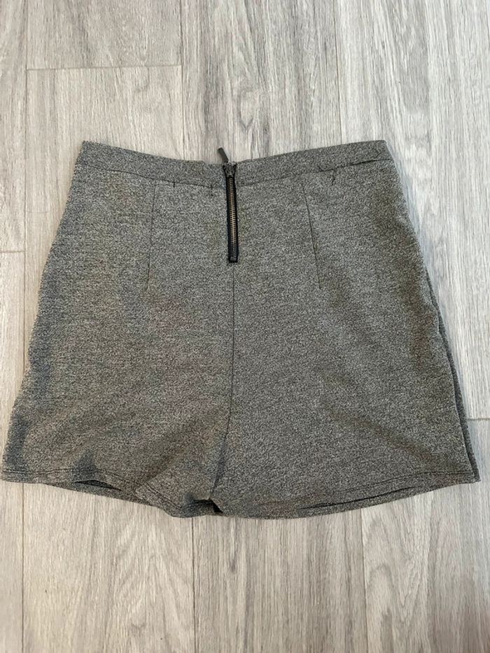 Jupe Short - Excellent état - Taille 40 équivalent L - Jennyfer - Doublure intérieure - Effet jupe à l’avant - Gris moucheté - Zip dans le dos - Polyester, viscose et élastane