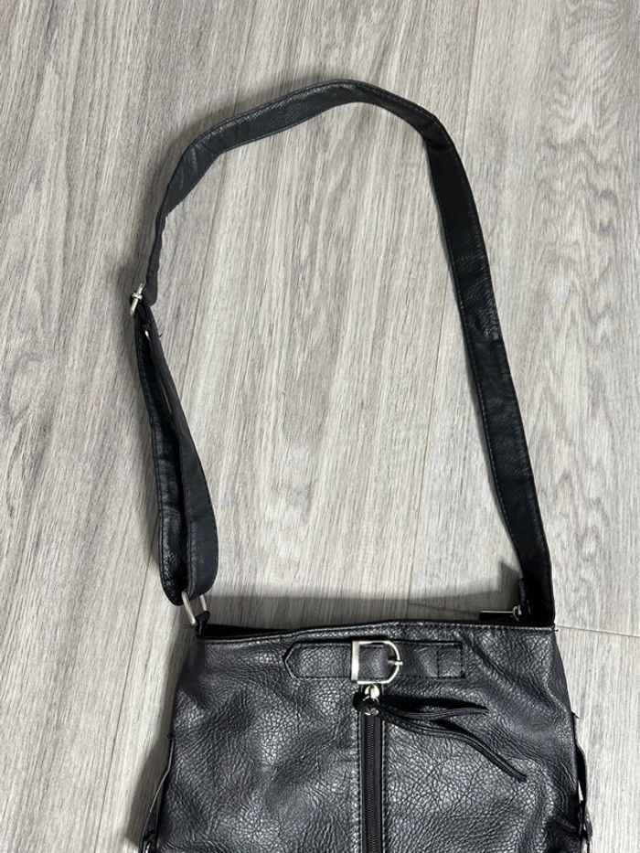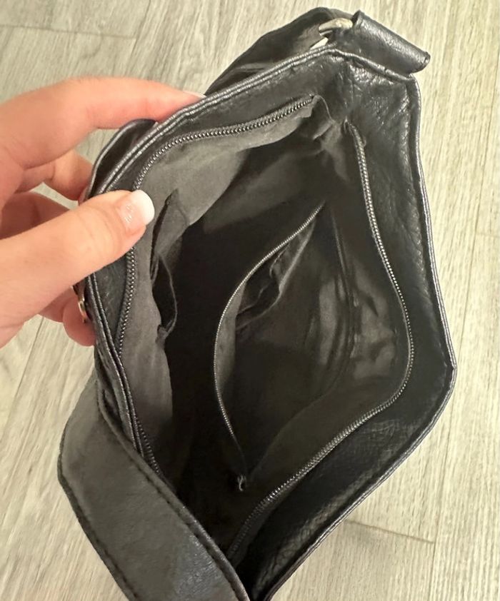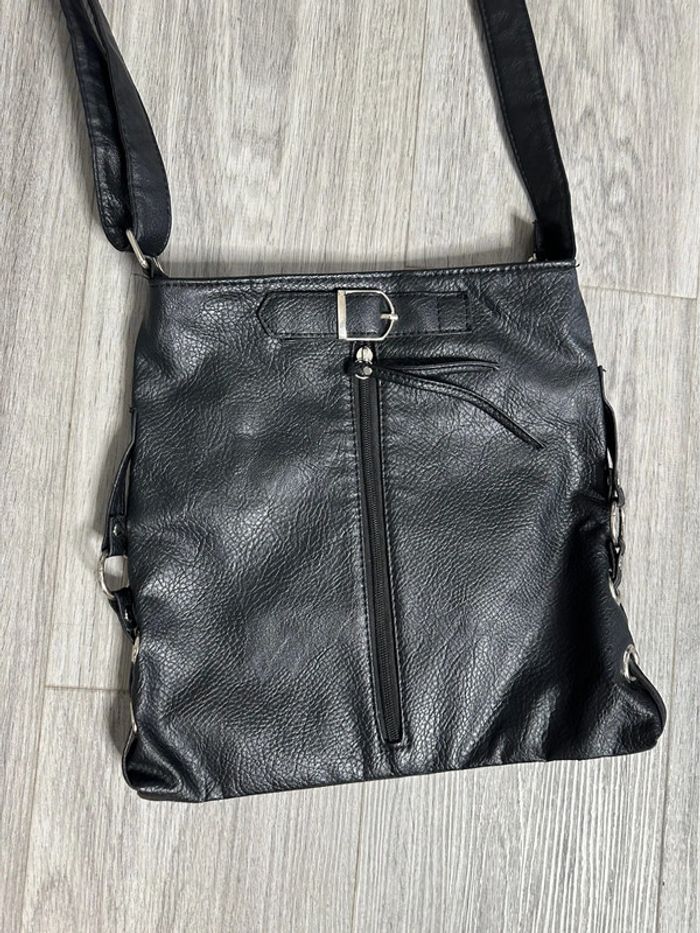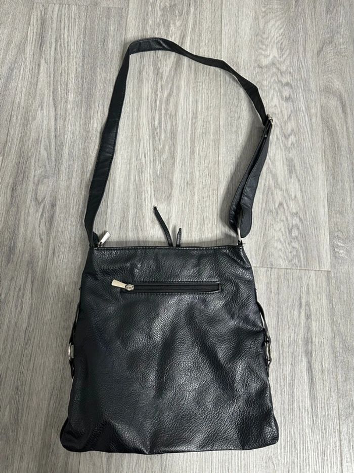 Sac bandoulière - Excellent état - Noir et argenté - Plusieurs poches à zips - Doublure intérieure en tissus - Anneaux argentés sur les côtés - Bandoulière réglable - Style 2YK, années 2000 Dimensions: - 30cm de hauteur - 30cm de largeur - 2,5cm de profondeur