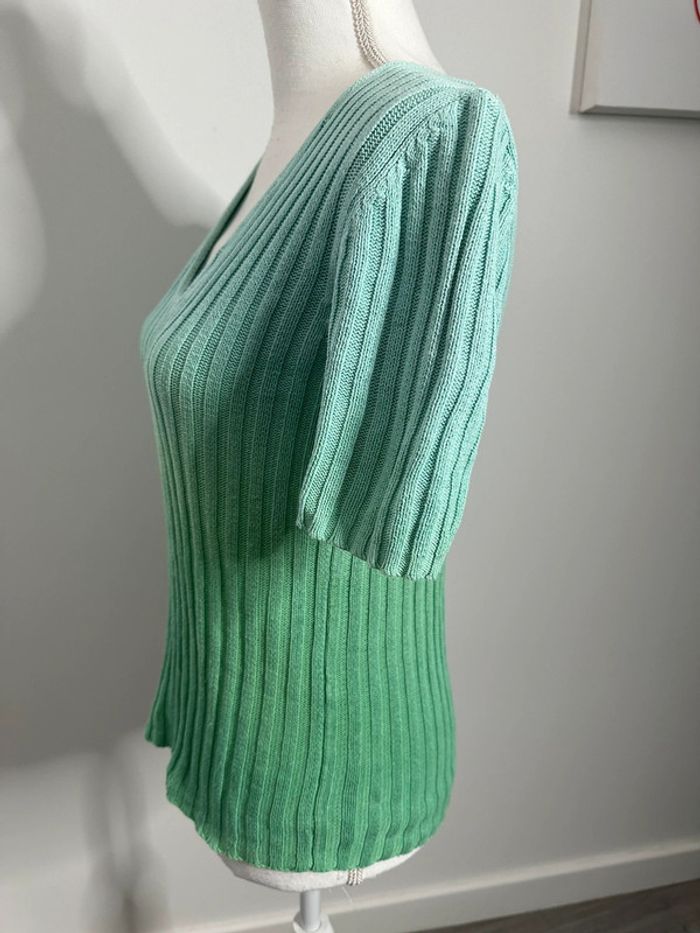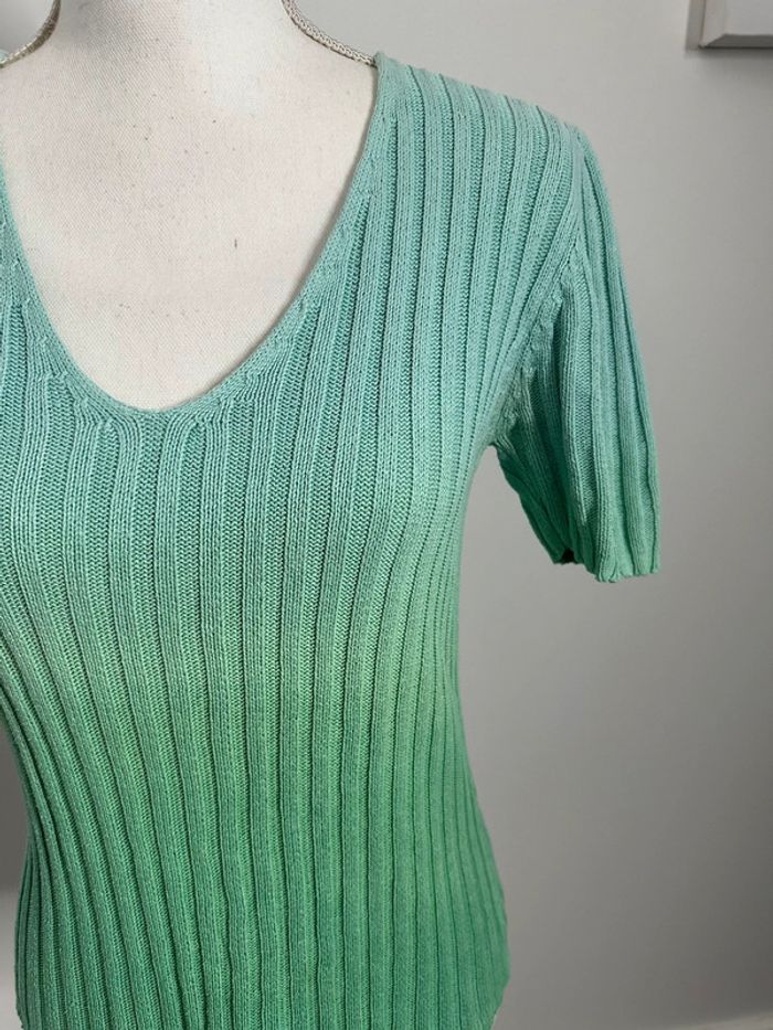Pull côtelé - Excellent état - Taille 36 équivalent S - Vert et bleu - Style 2YK années 2000 - Couleur dégradées tie and dye - Manches courtes - Tissus côtelé - Plus d’étiquette de taille ni de matière