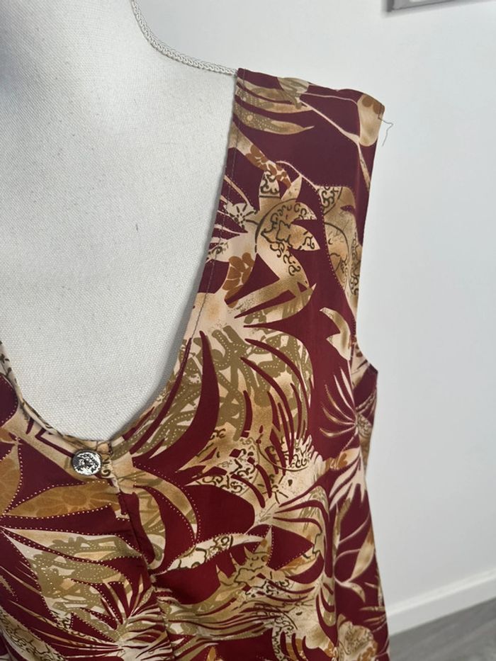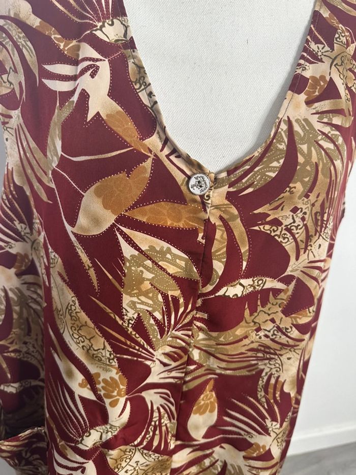 Robe tropicale - Excellent état - Taille 44/46 équivalent 2XL/3XL - Terra Cotta et beige - Imprimés tropicaux - Une poche sur le côté - Col en V - Tissus fluide - Plus d’étiquette de taille ni de matière