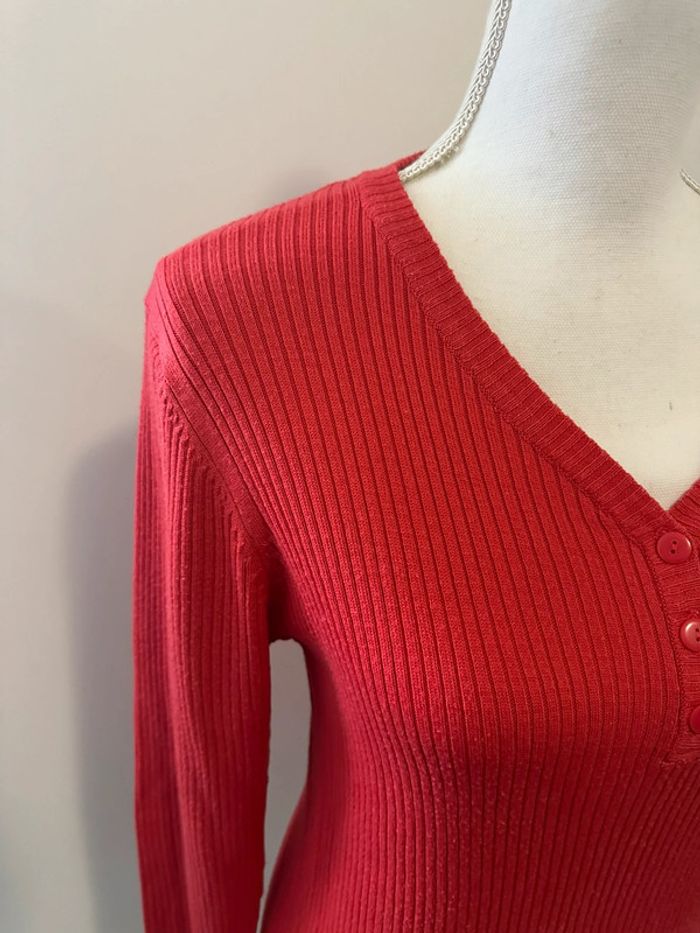 Pull côtelé - Excellent état - Taille 42/44 équivalent XL/XXL - Marque Damart - Couleur rose rouge (comme sur les photos) - Tissus côtelé - Ultra doux et chaud - Boutons au niveau du décolleté - 100% Acrylique