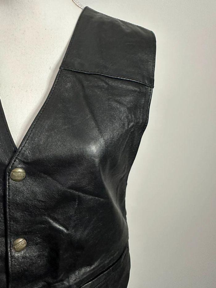 Veste sans manche en cuir véritable Vintage T44 XXL - photo numéro 2