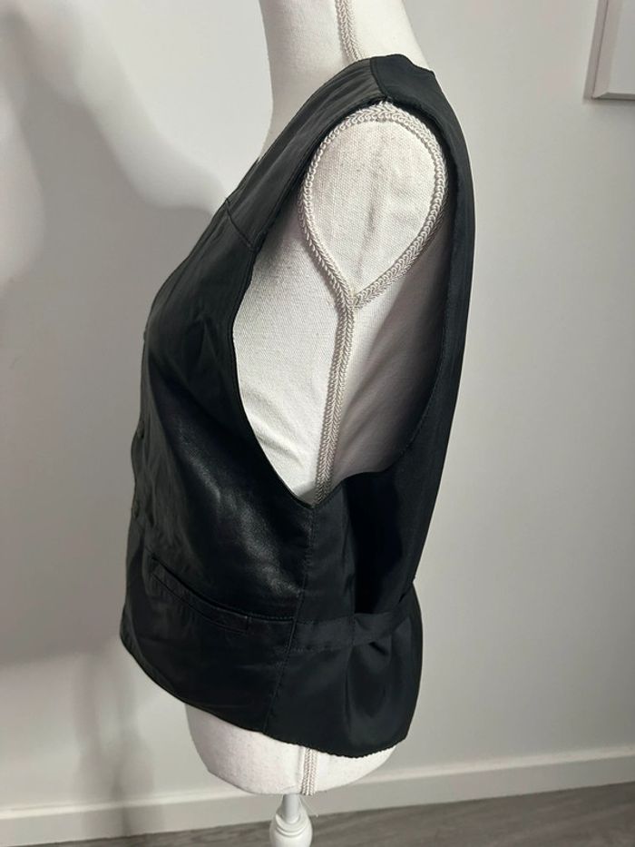 Veste sans manche en cuir véritable Vintage T44 XXL - photo numéro 3