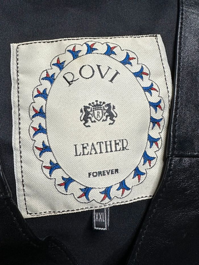 Veste sans manche - Excellent état - Taille 44 équivalent XXL - Couleur noir - Se ferme avec des pressions - Cuir véritable à l’avant - Polyester à l’arrière - Réglable dans le dos - Rovi Leather Forever - Lien à ajuster dans le dos - Vintage, années 80’