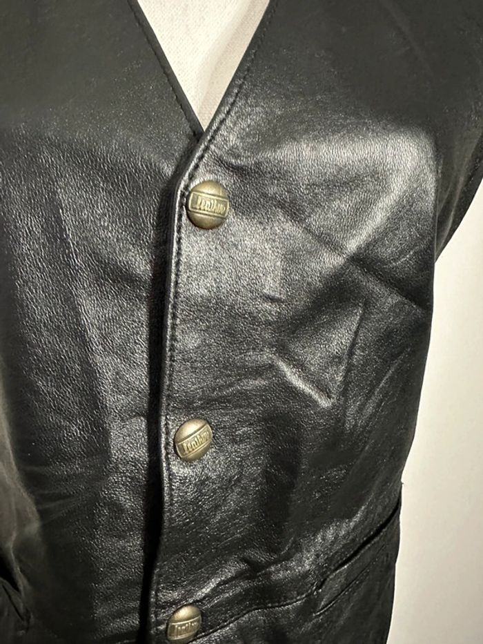 Veste sans manche en cuir véritable Vintage T44 XXL - photo numéro 6