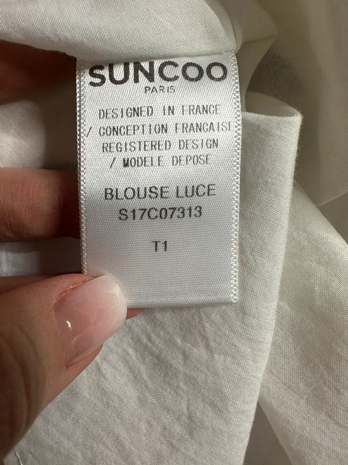 Blouse à pois - Excellent état - Taille 1 équivalent 36 S - Suncoo Paris - Modele Luce - Imprimés pois - Manches courtes - Beige crème, Blanche et Noire - Doublure intérieure - Viscose, polyamide, polyester et coton