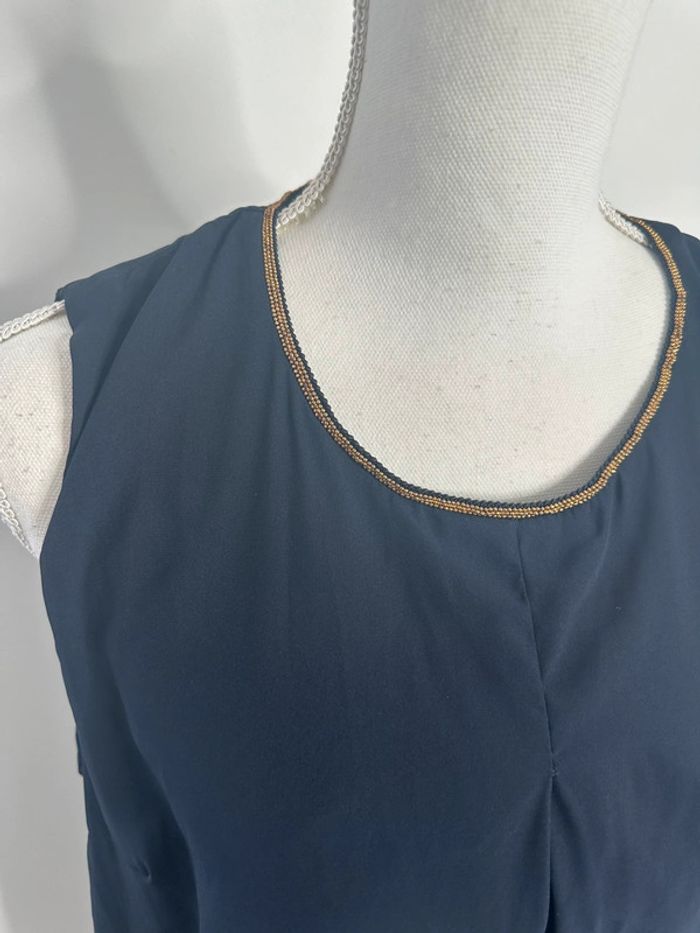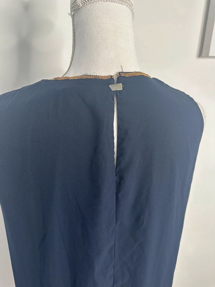 Robe - Excellent état - Taille 46 équivalent 3XL - Bleue marine et dorée - Marque H&M - Doublure intérieure - Col en petites perles dorées - 100% polyester