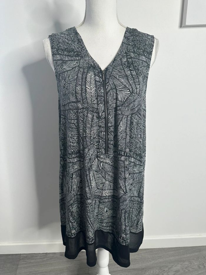 Robe zébrée - Excellent état - Taille 44 équivalent XXL - Noire et blanche - M&S Mode - Imprimés zèbre - Zip à l’avant - Bas Transparent - Viscose, élastane et polyester