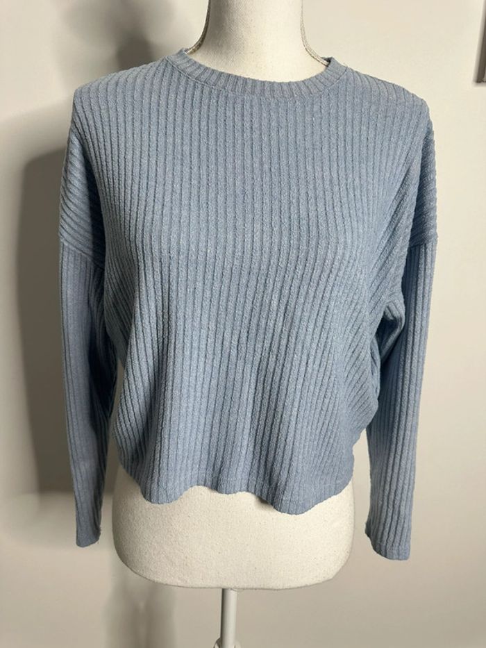 Pull côtelé crop top bleu ciel Vintage T38/40 M/L - photo numéro 1
