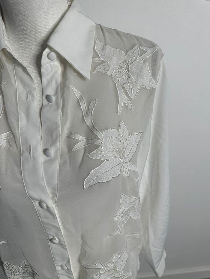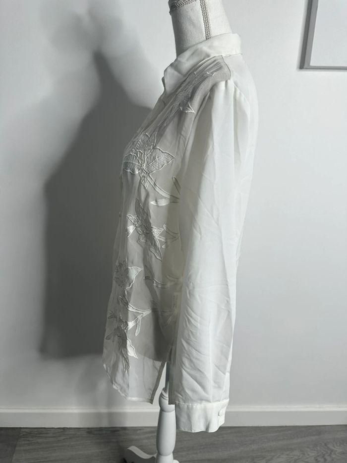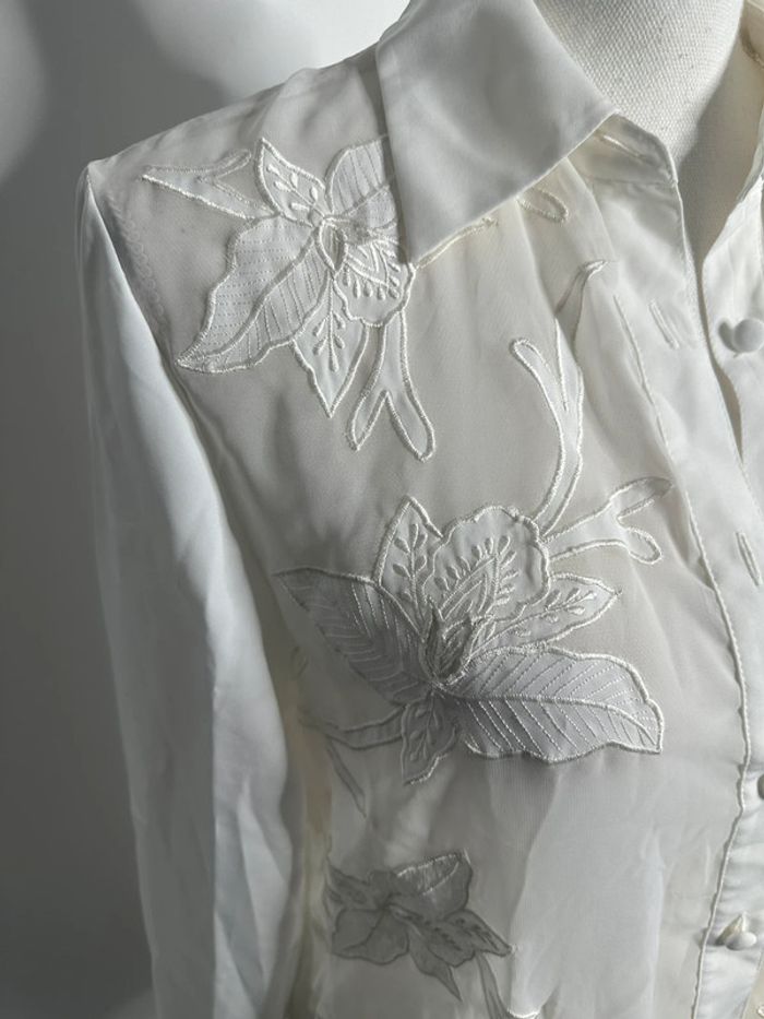 Chemisier blanc broderies fleurs Anne Weyburn Vintage T38 M - photo numéro 3