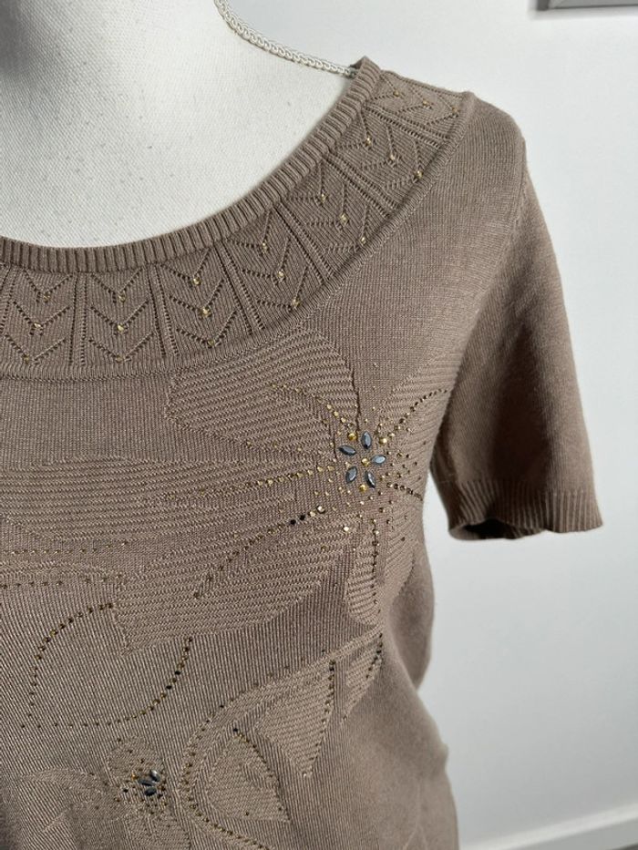 T-shirt à fleurs taupe et doré argenté Damart T38/40 M/L - photo numéro 9