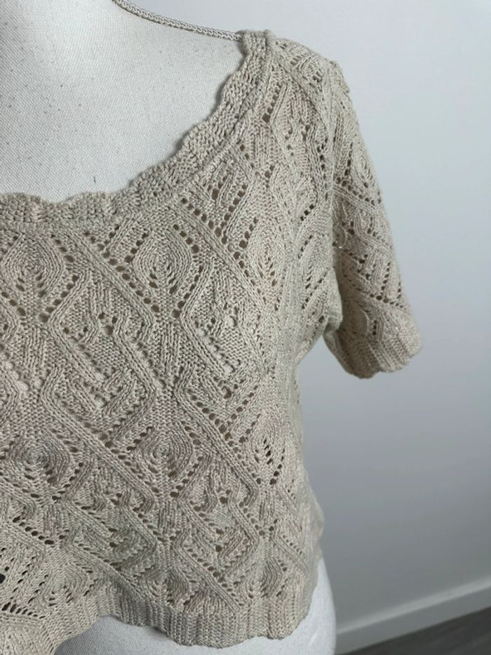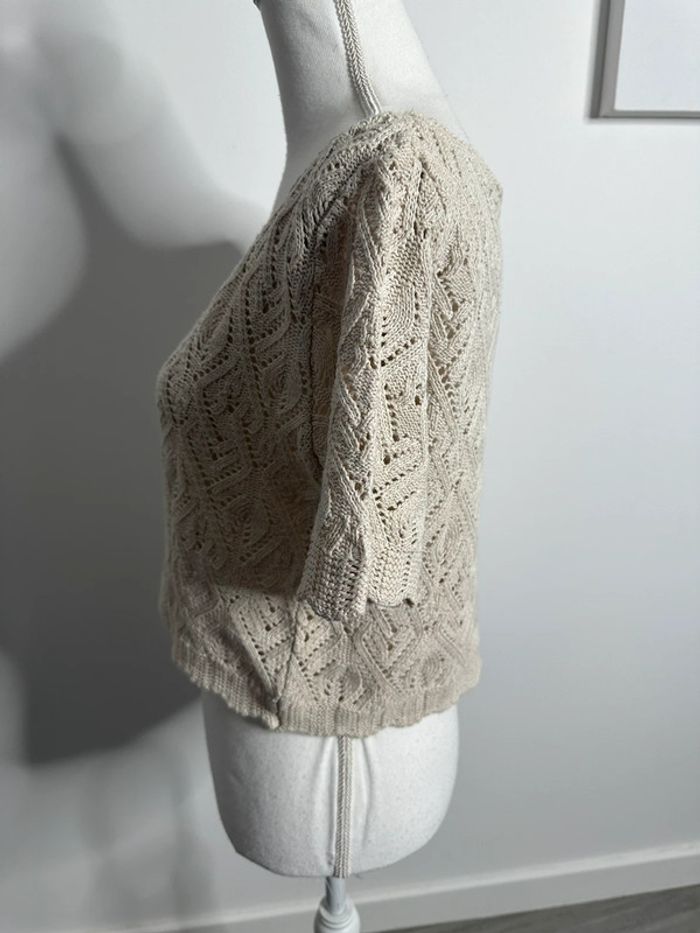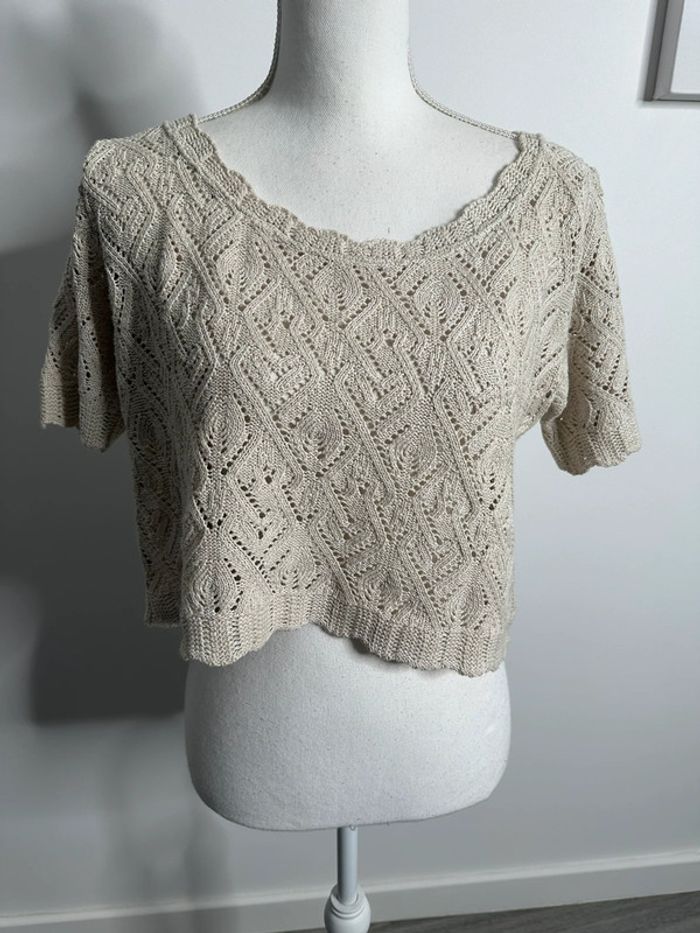 Crop top - Excellent état - Taille 38 équivalent M - Couleur beige crème - Manches courtes - En crochet - Promod Vintage, ancienne étiquette de la marque - Plus d’étiquette de taille ni de matière