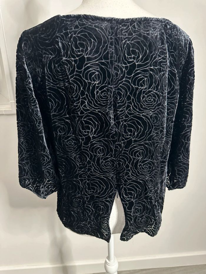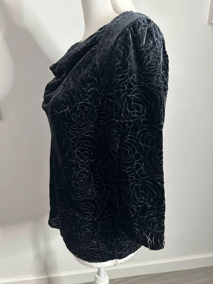 Blouse à fleurs noire en velours Vintage T38 M - photo numéro 4
