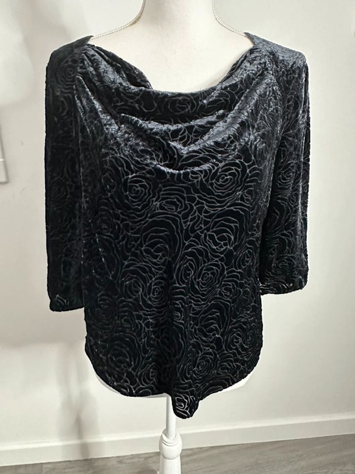 Blouse à fleurs noire en velours Vintage T38 M - photo numéro 2