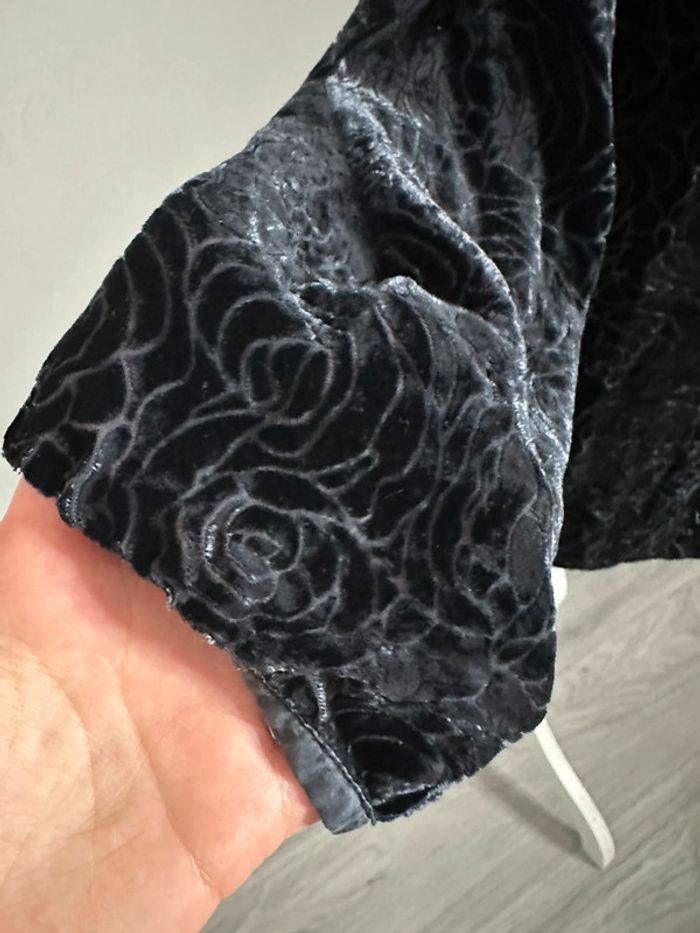 Blouse à fleurs noire en velours Vintage T38 M - photo numéro 7