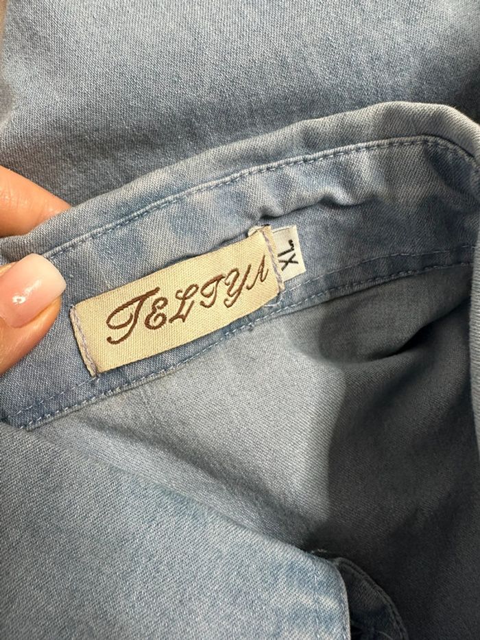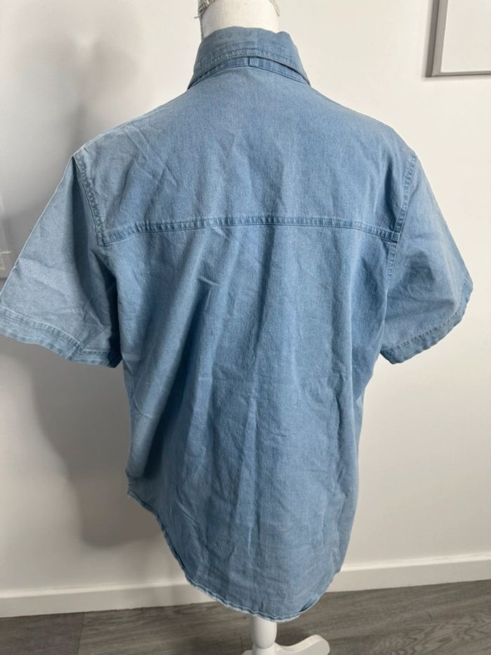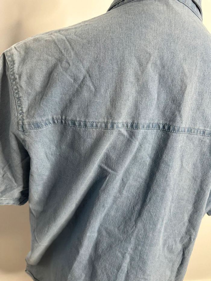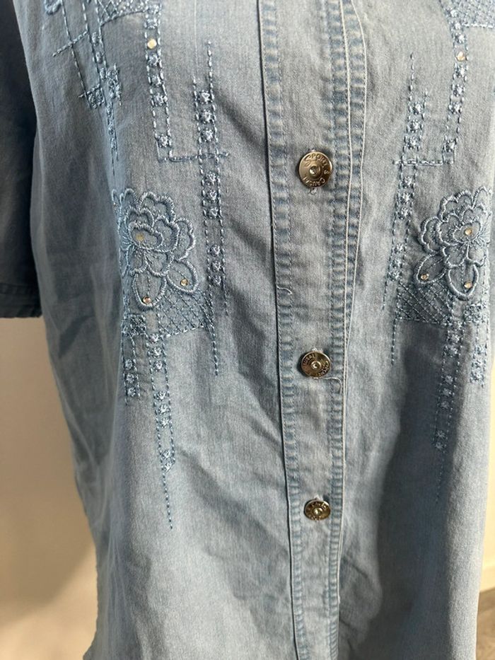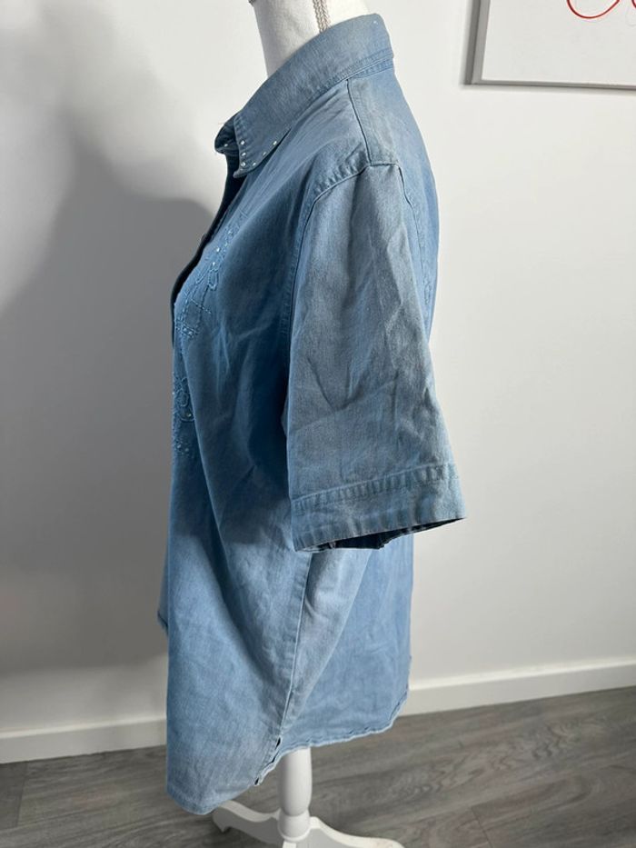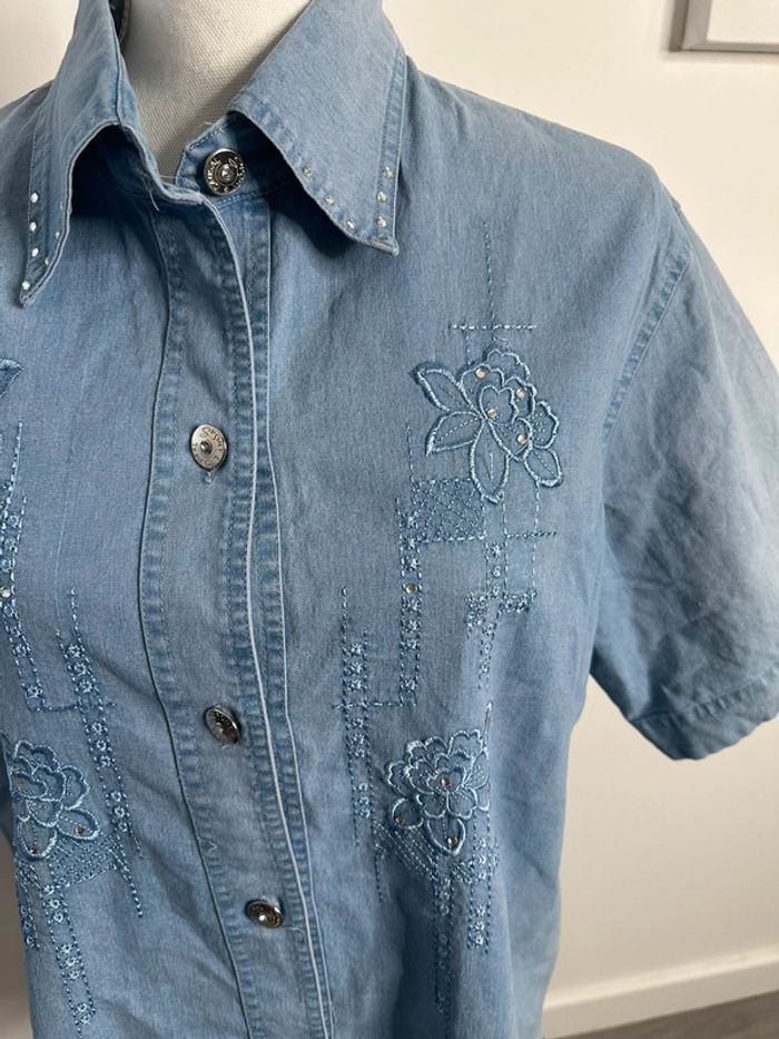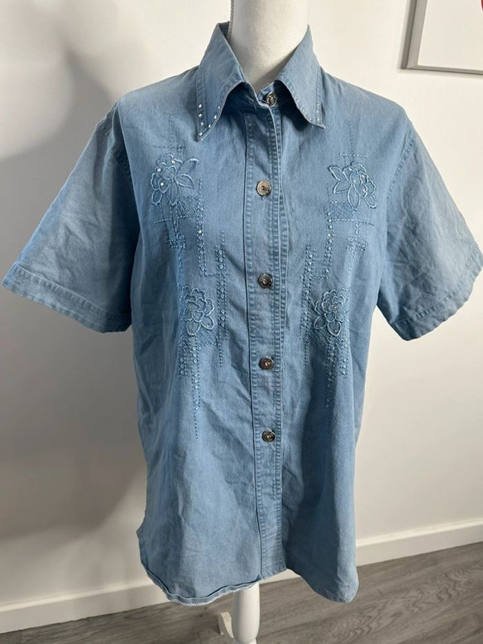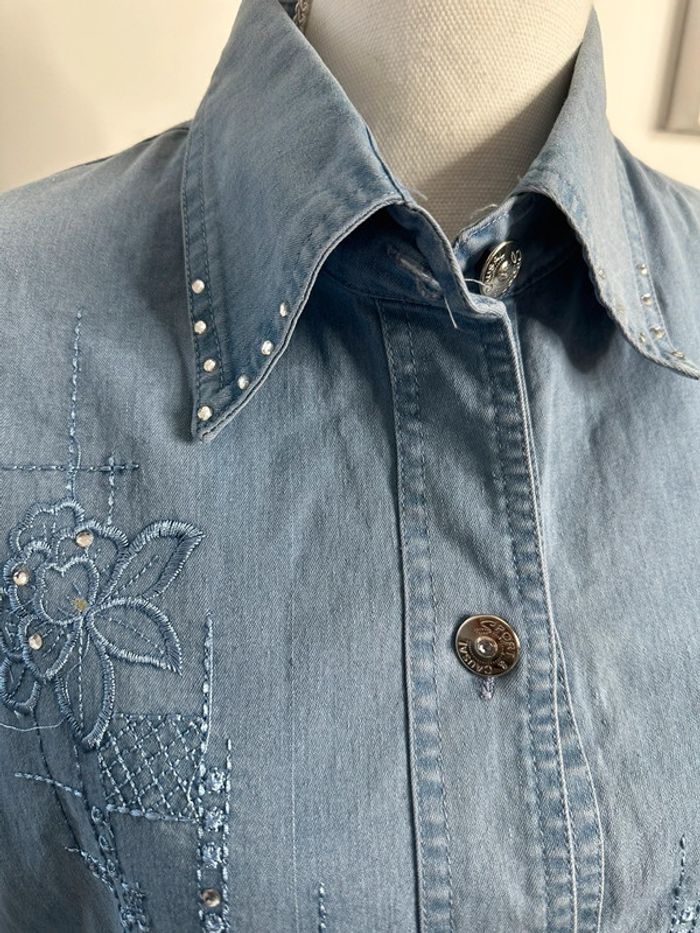 Chemise en jean broderies et strass bleue et argentée Vintage T42 XL