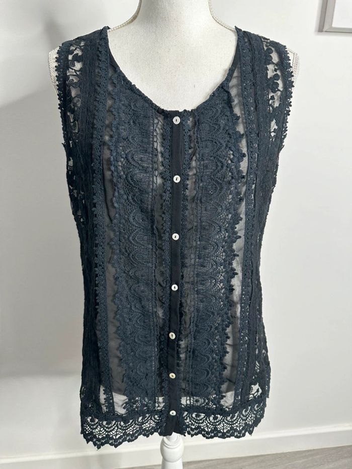 Débardeur - Excellent état - Taille 40 équivalent L - Jacqueline Riu - Se ferme avec des boutons - Transparent - En dentelle - Polyamide, polyester et coton