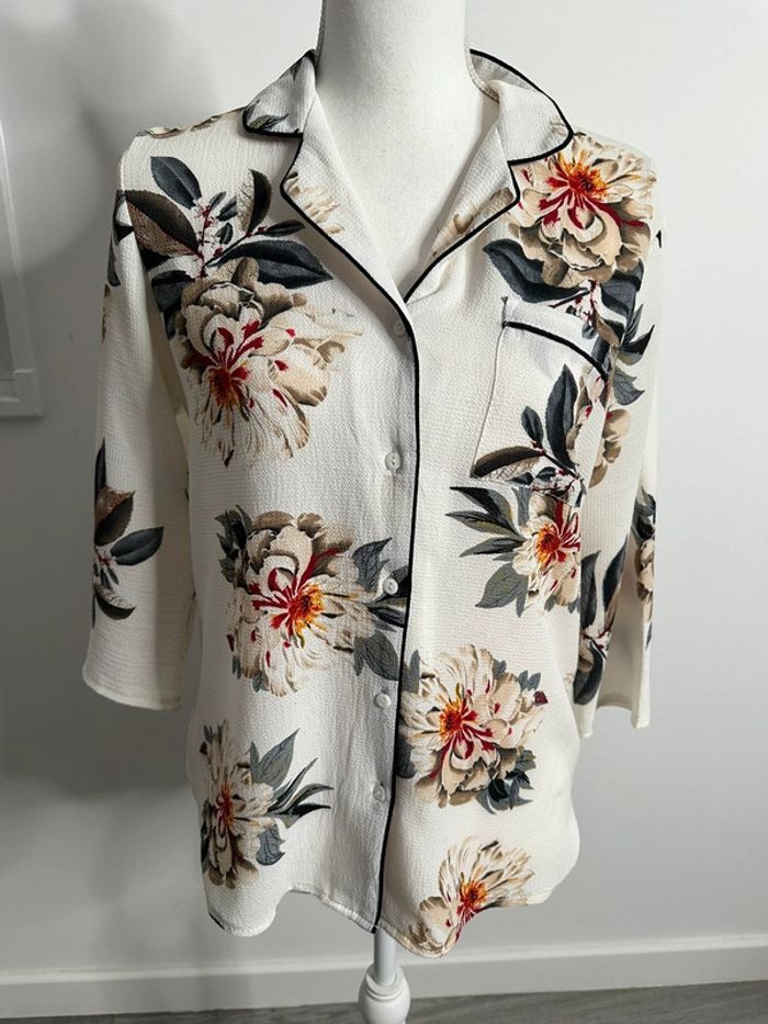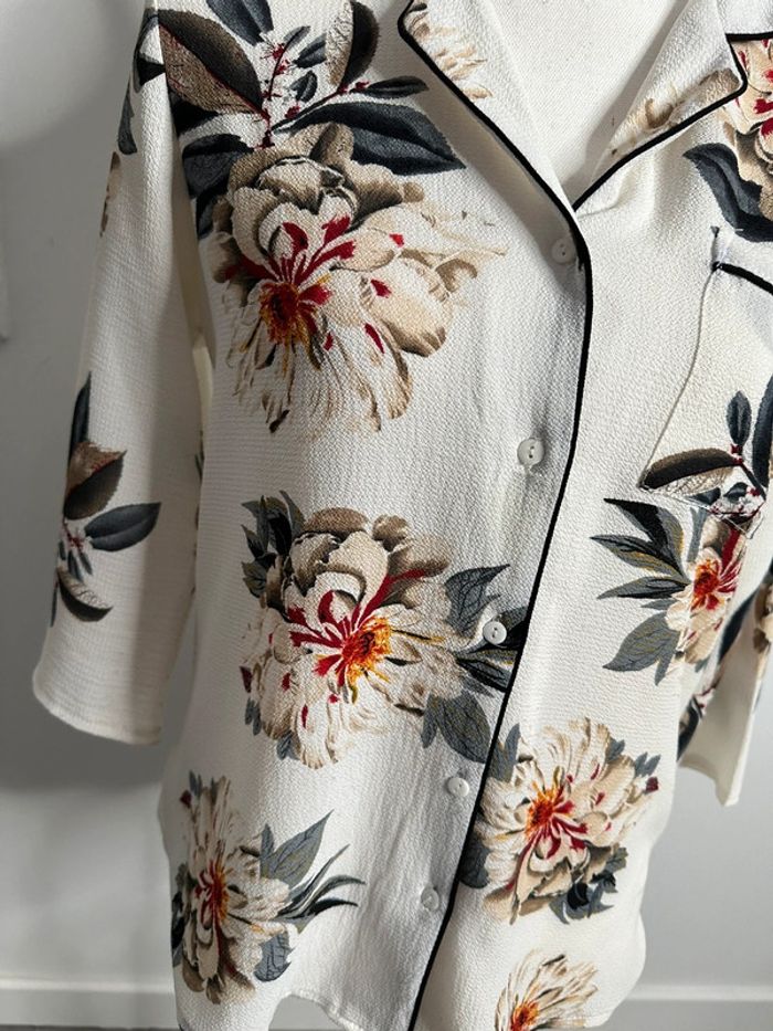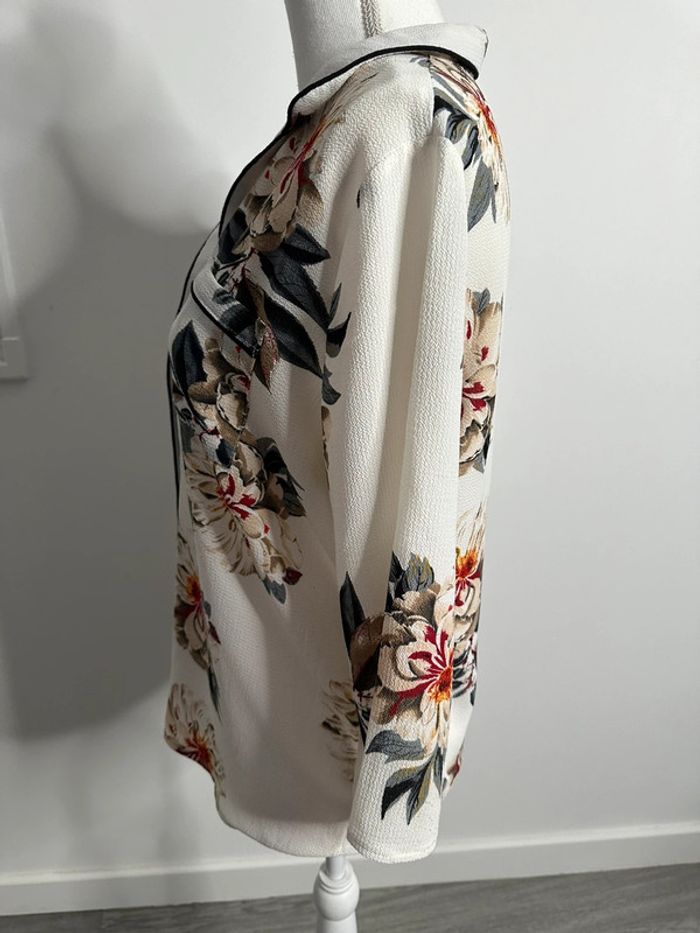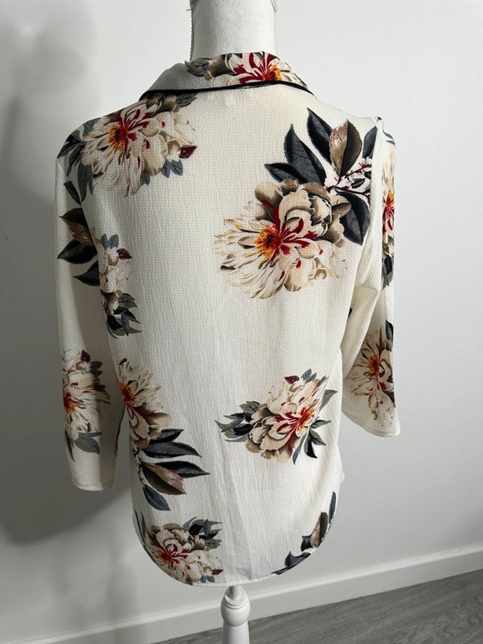 Blouse oversize à fleurs - Excellent état - Taille 36 équivalent S - Blanche et multicolore - Manches 3/4 - Se ferme avec des boutons - 100% Polyester - Tissus fluide - Lili & Lala