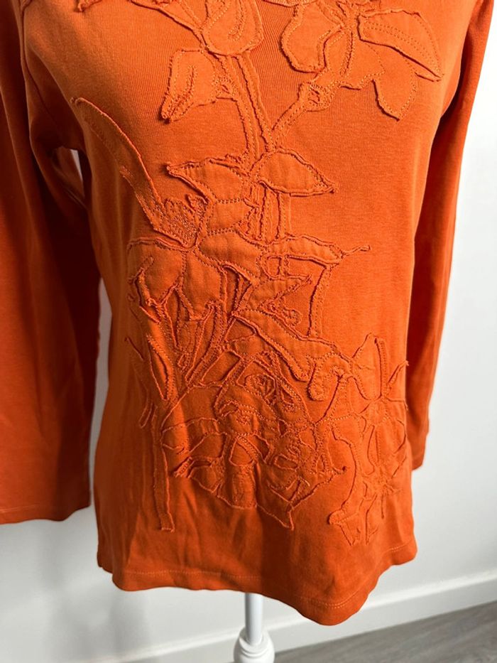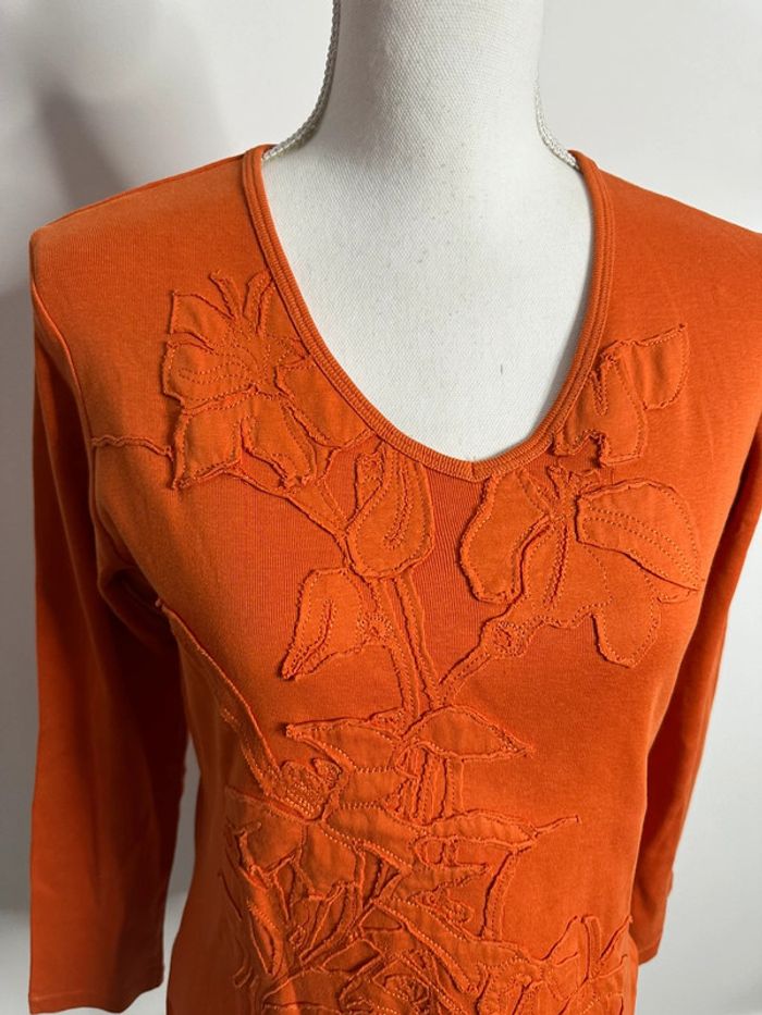 T-shirt broderies fleurs orange Vintage T1 36/38 S/M - photo numéro 3