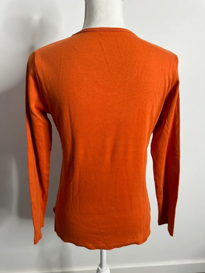 T-shirt à manches longues - Excellent état - Taille 1 équivalent 36/38 S/M - Couleur orange - 100% Coton - Vintage, années 90’ - Broderies fleurs à l’avant