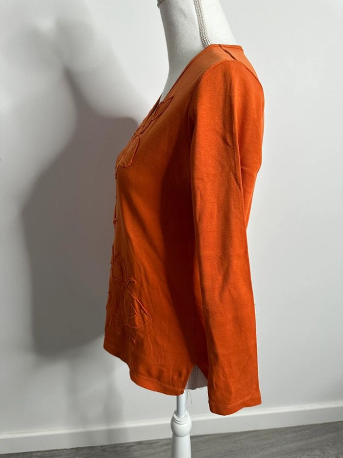 T-shirt broderies fleurs orange Vintage T1 36/38 S/M - photo numéro 7