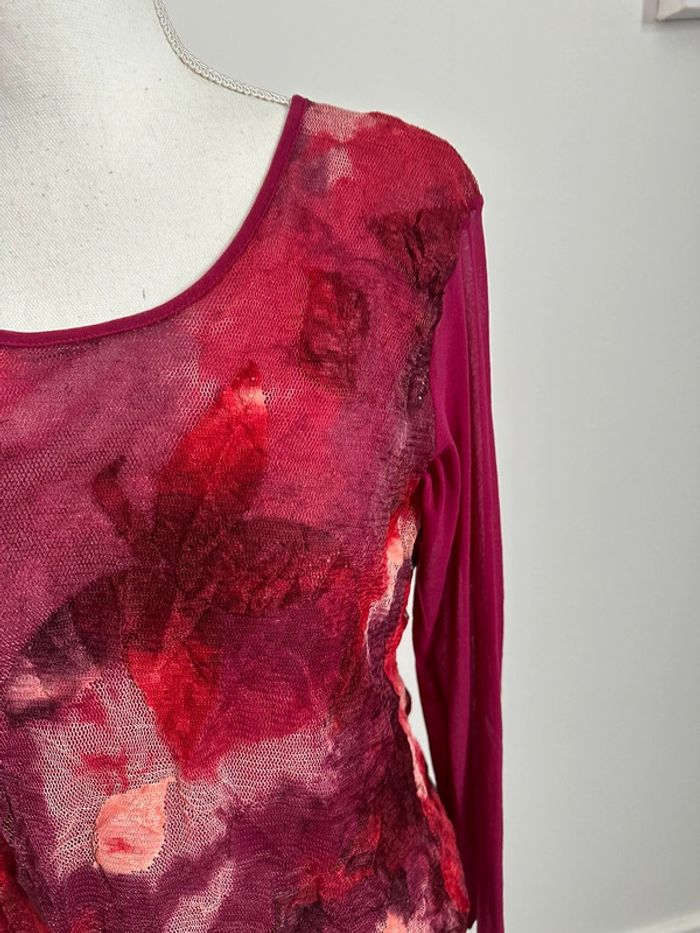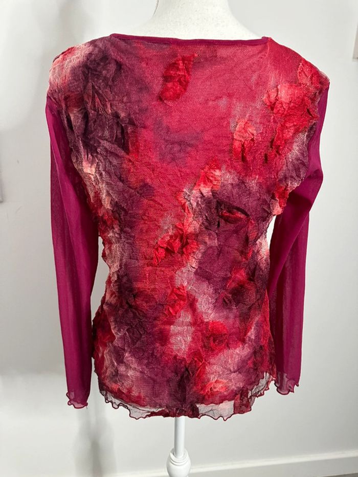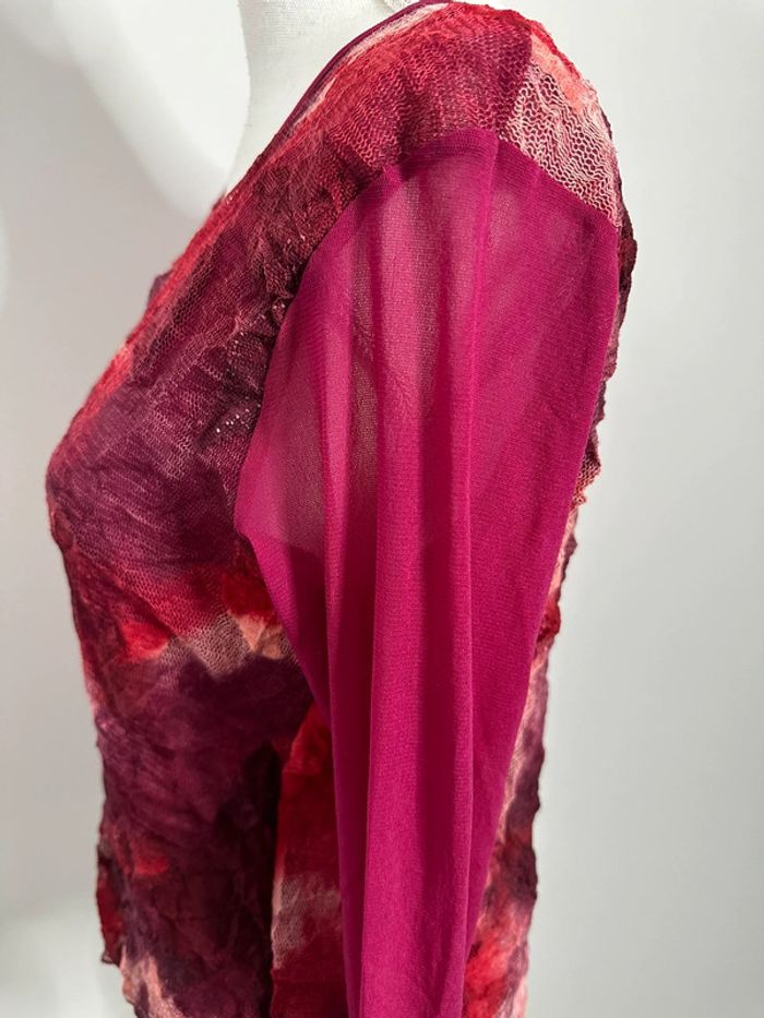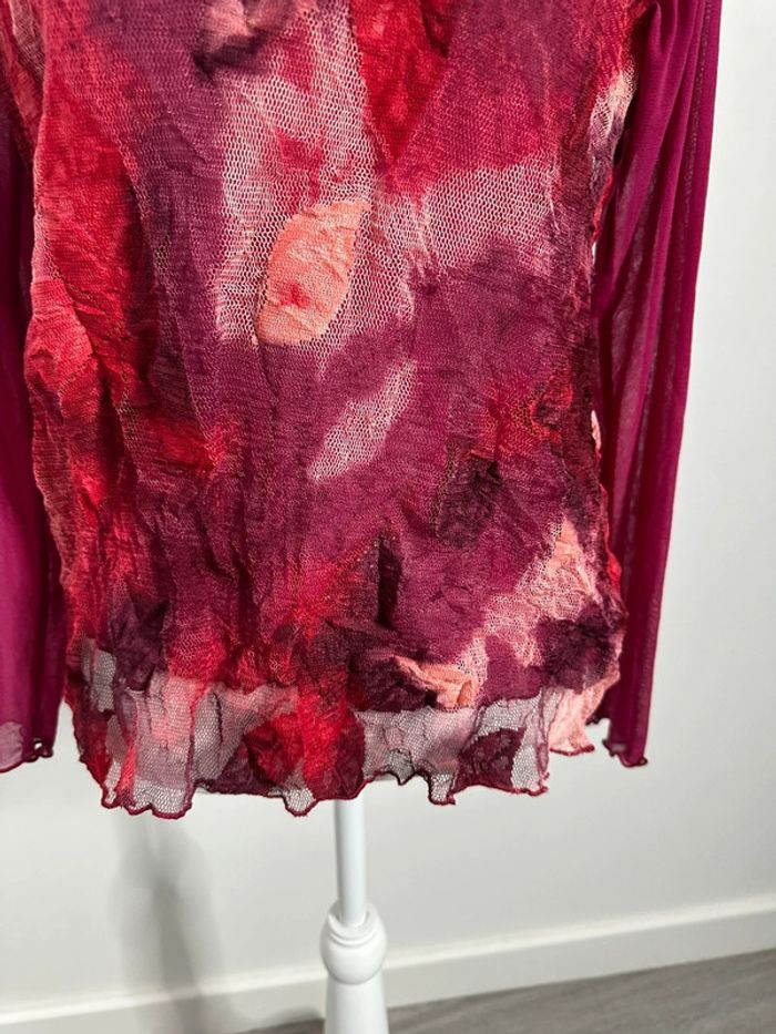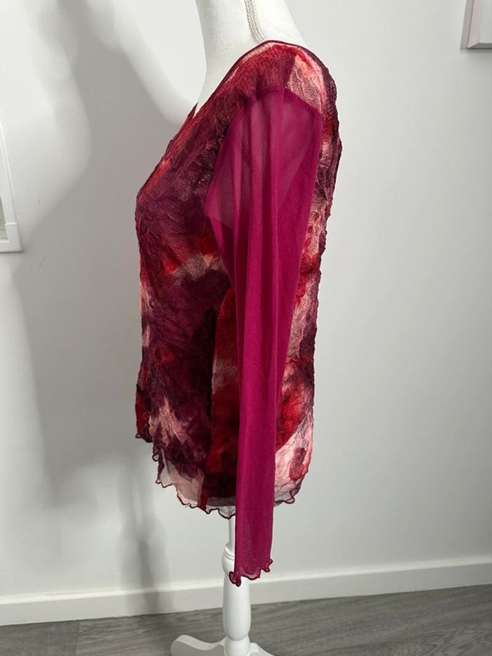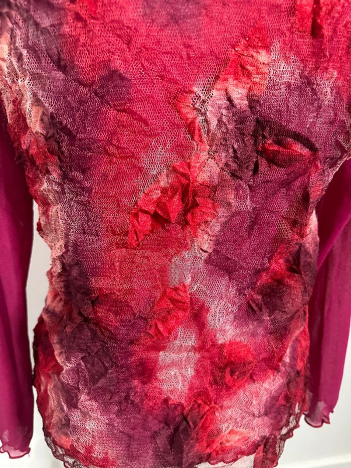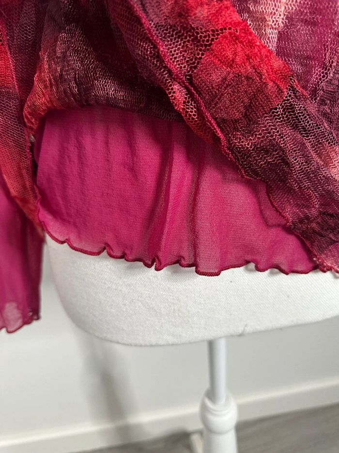 Blouse en maille résille rose fuchsia et bordeaux Kiabi Vintage T46 3XL - photo numéro 2