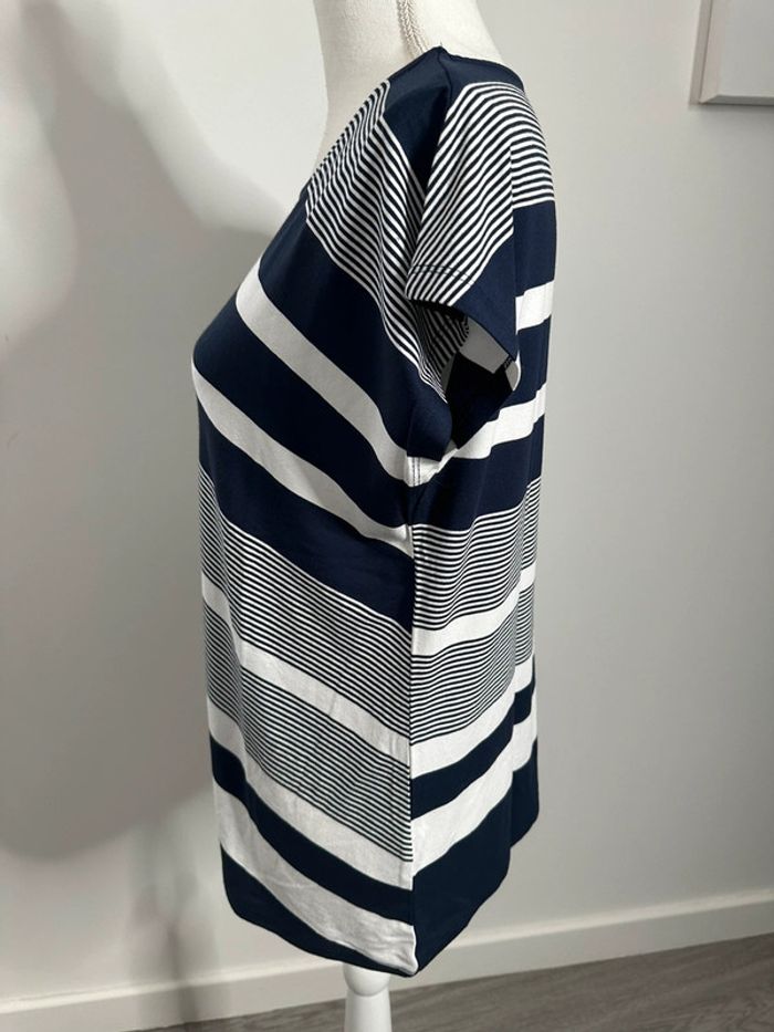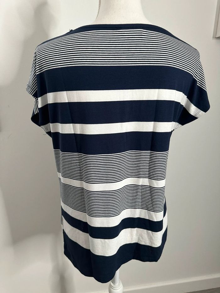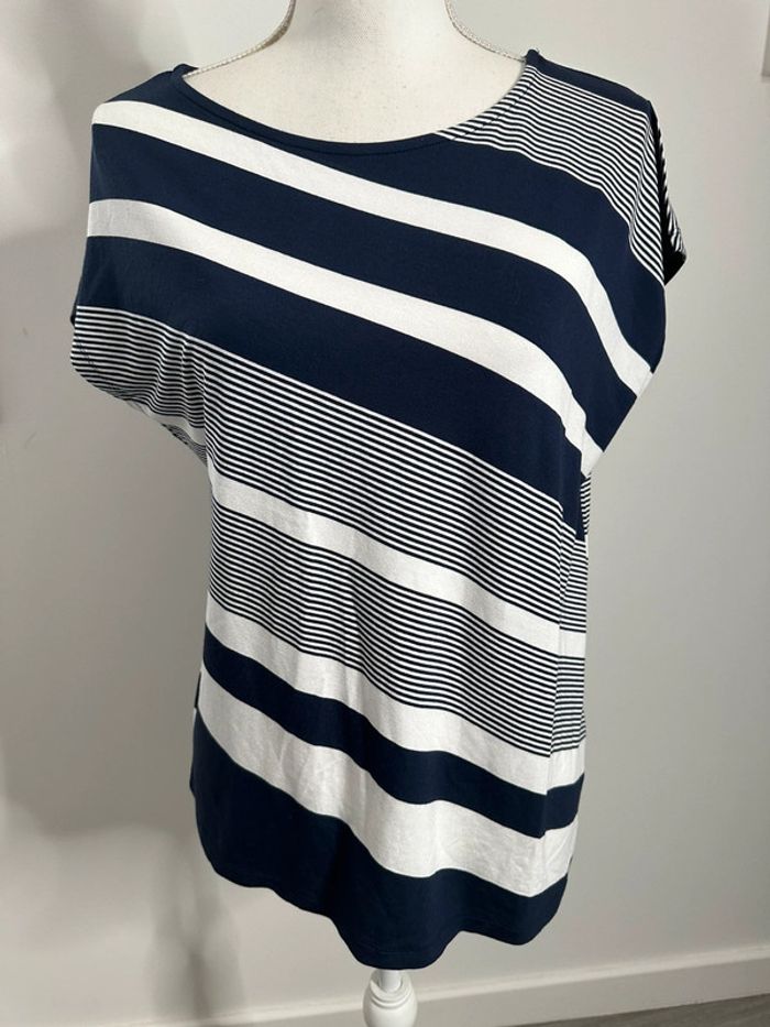 Blouse marinière - Excellent état - Bleue marine et blanche - Manches courtes - Marinière à rayures - Maison 123 Paris - Taille M équivalent 38 - Coupe asymétrique - Viscose et élastane