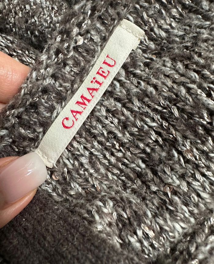 Robe pull marron beige et sequins Camaïeu T38 M - photo numéro 2