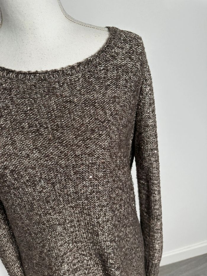 Robe pull marron beige et sequins Camaïeu T38 M - photo numéro 8