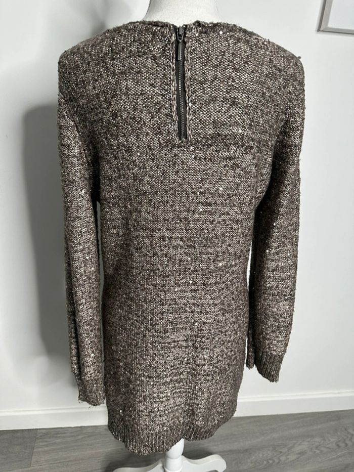 Robe pull marron beige et sequins Camaïeu T38 M - photo numéro 7