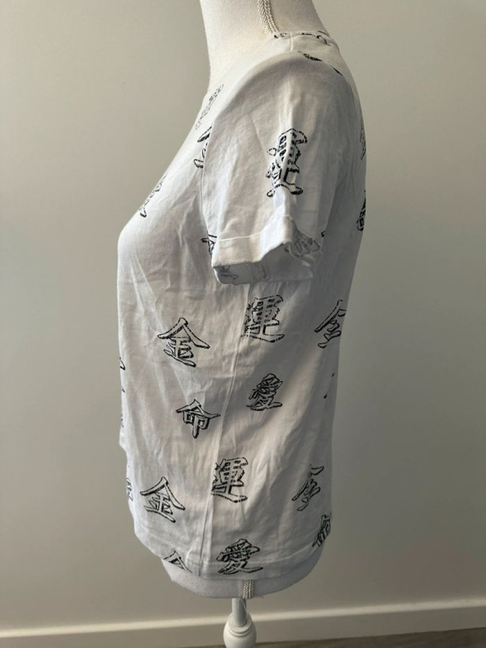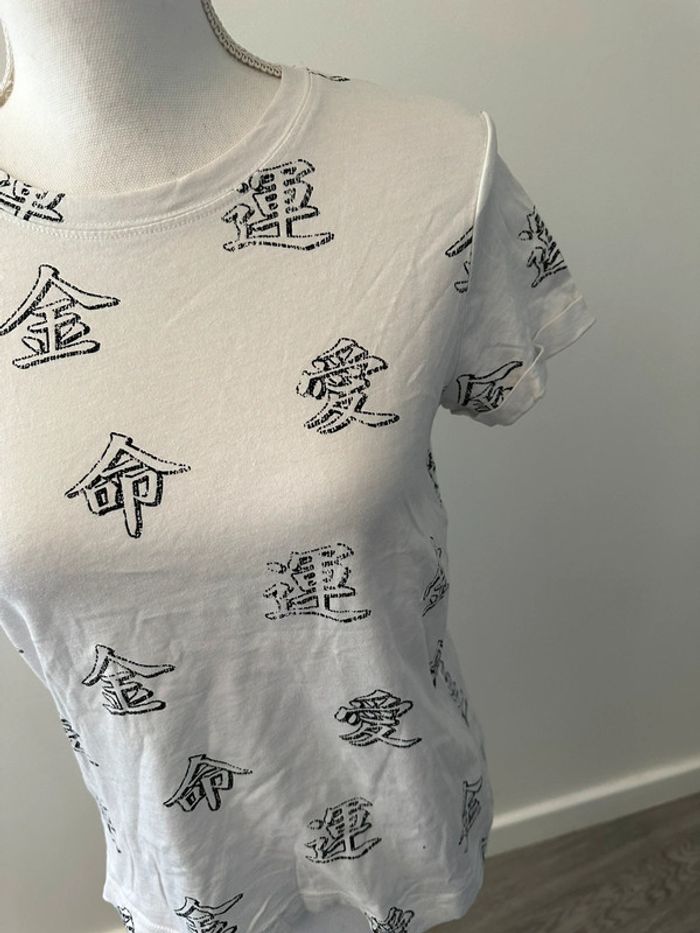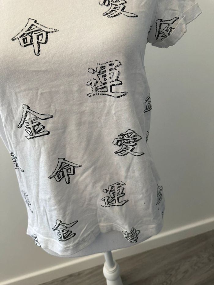 T-shirt blanc et noir imprimés chinois Bershka T36 S - photo numéro 1